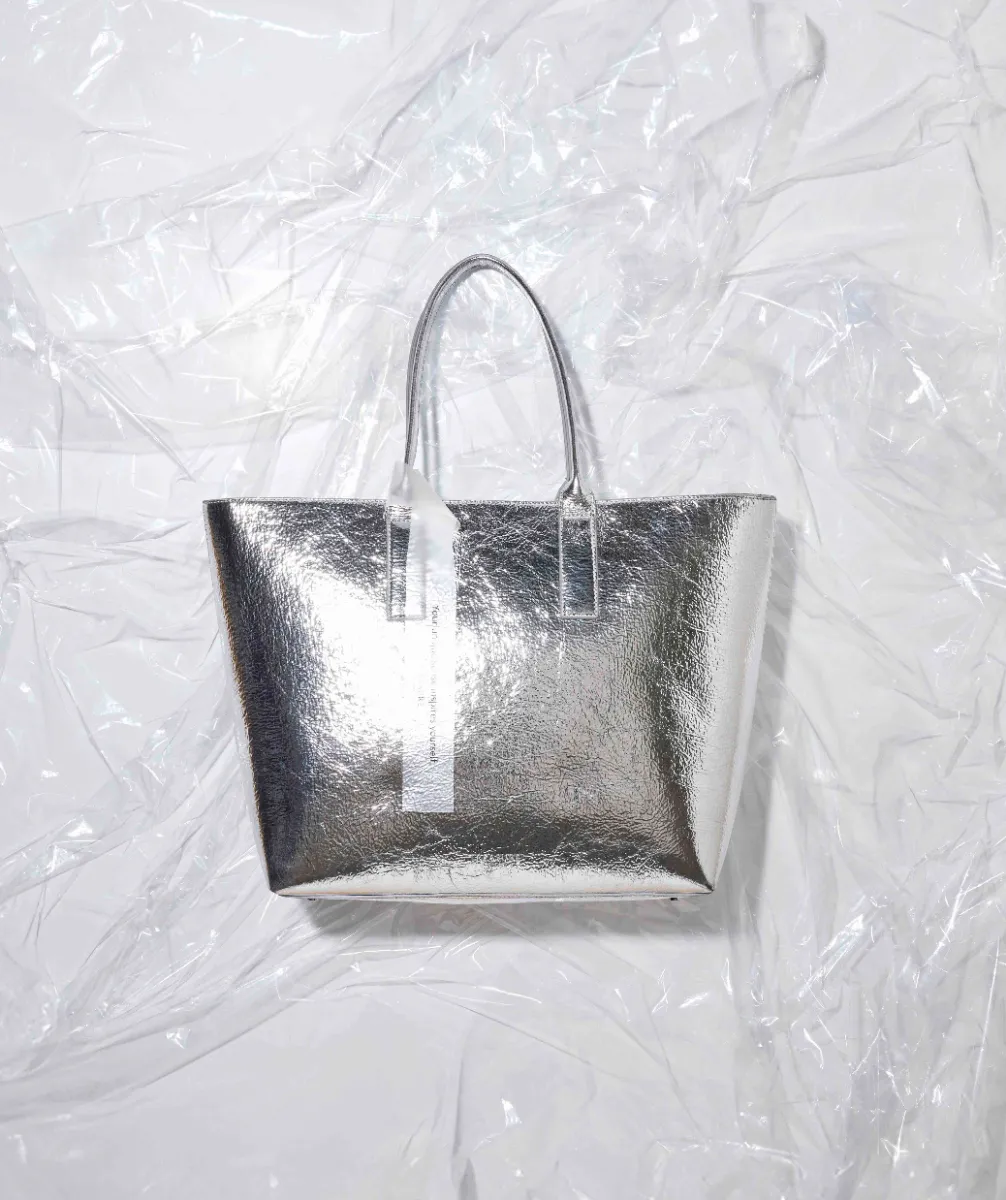 夏の日差しにきらめくシワ感のあるメタリック素材