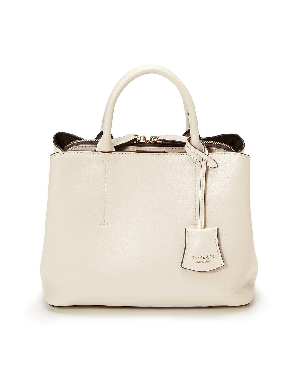 ハンドル付け根の飾りステッチと短めの丸ハンドルがポイント。