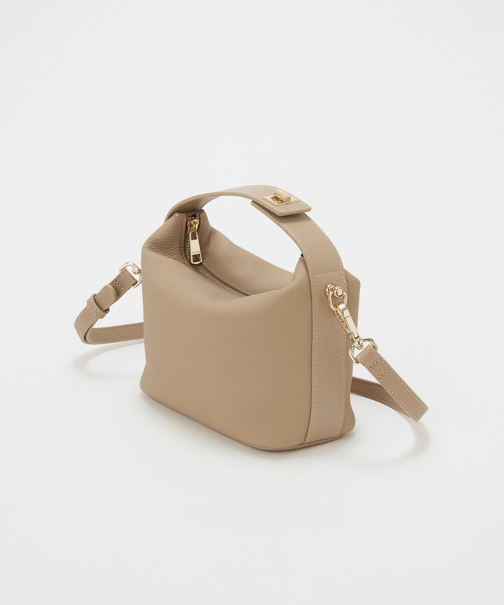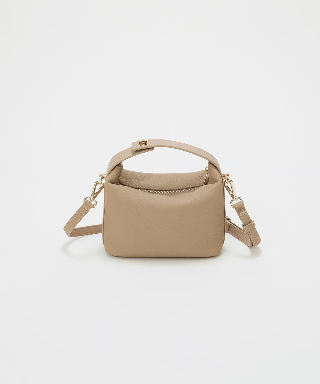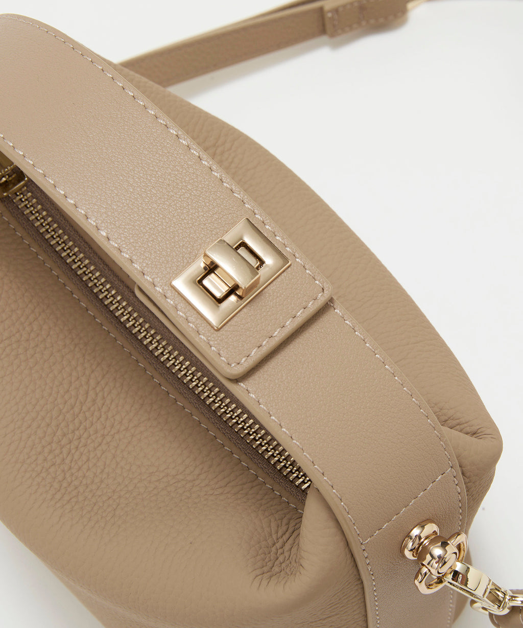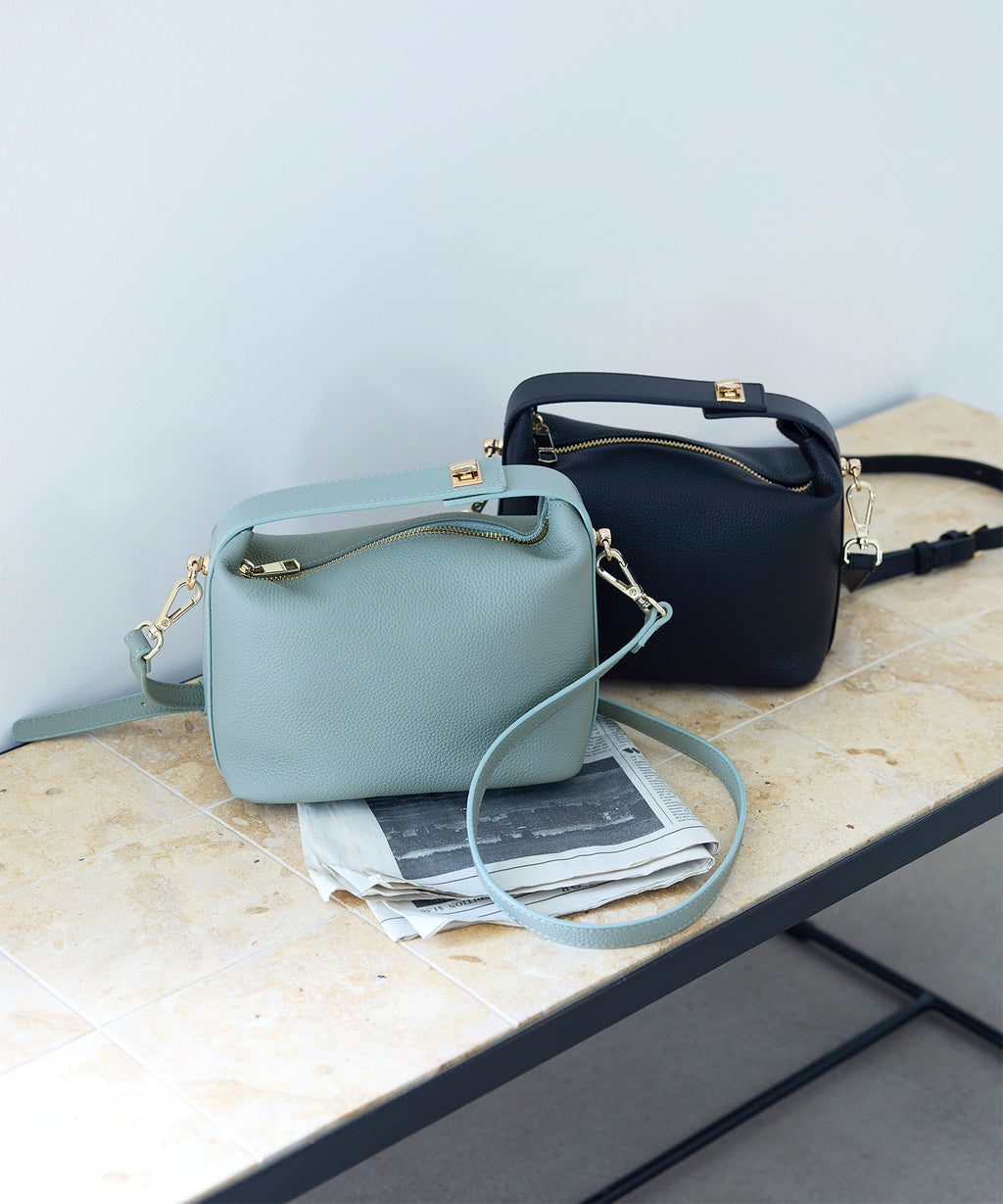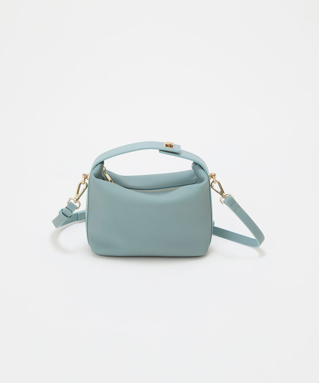 コロンとしたフォルムが可愛らしいコンビレザーのミニバッグ。