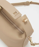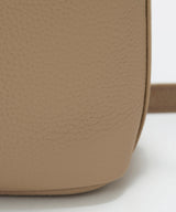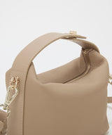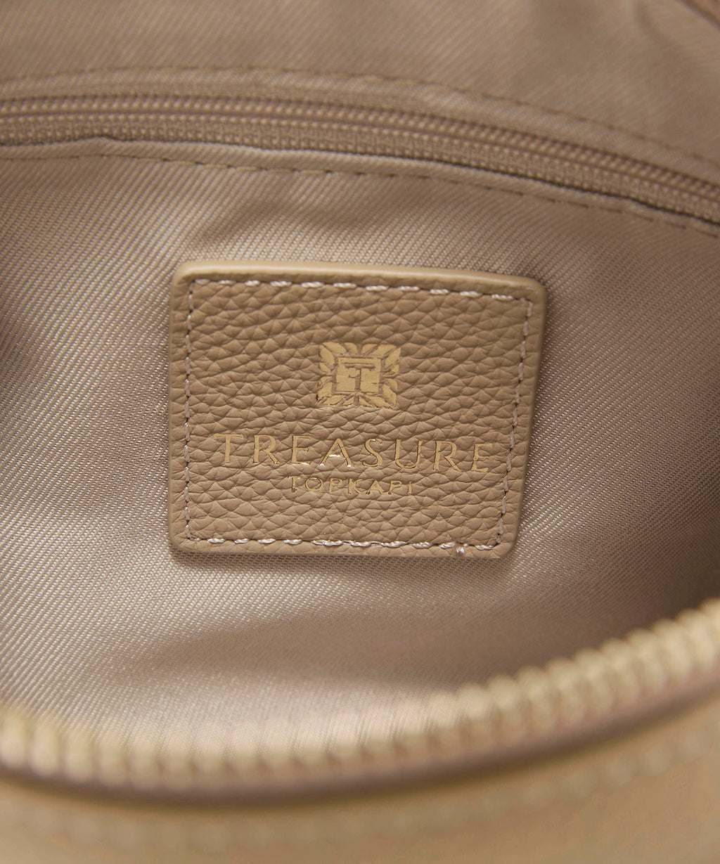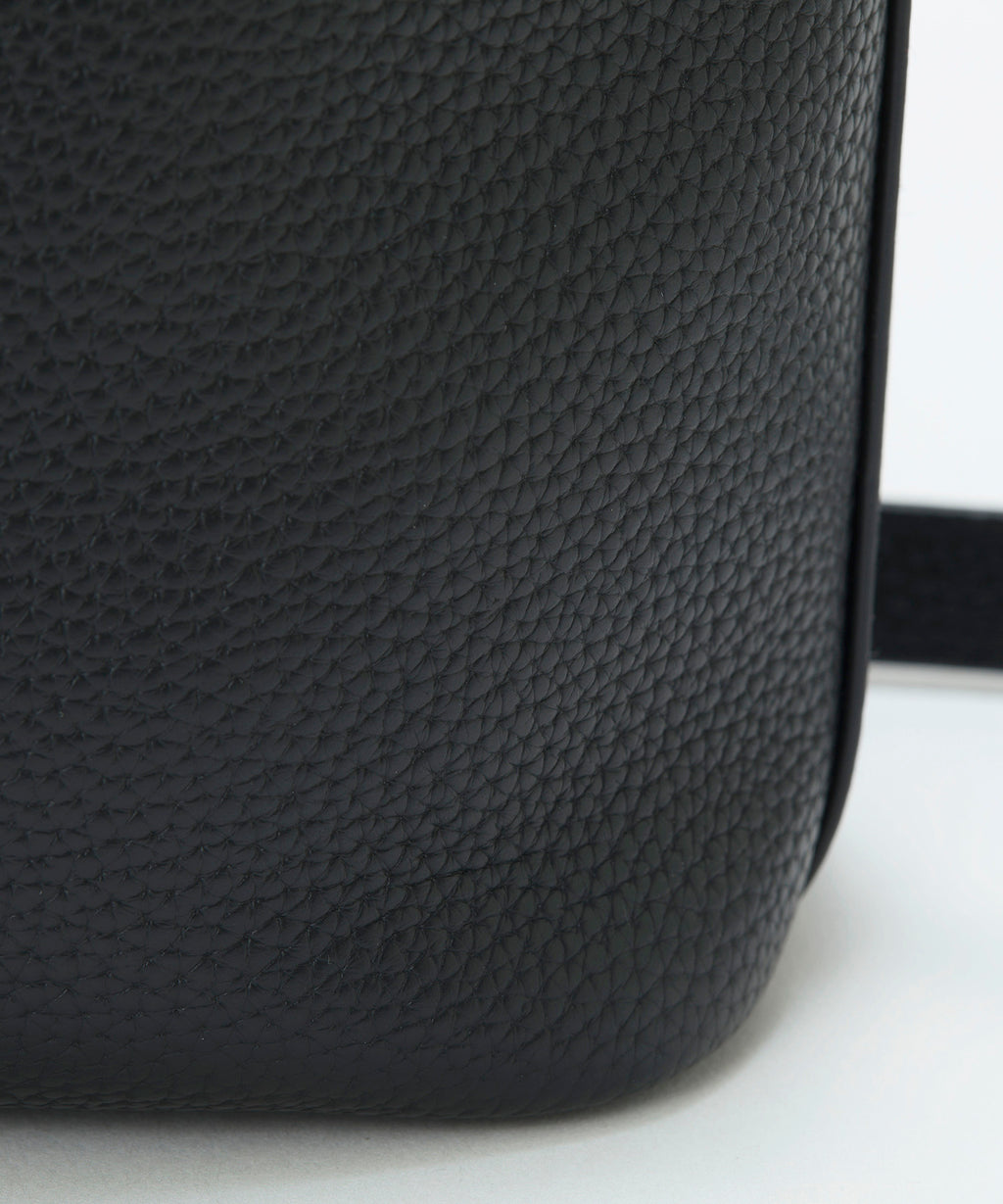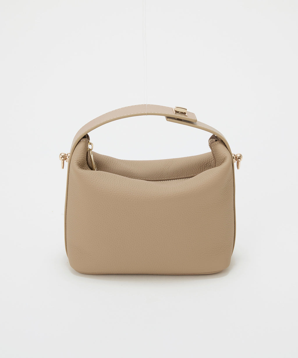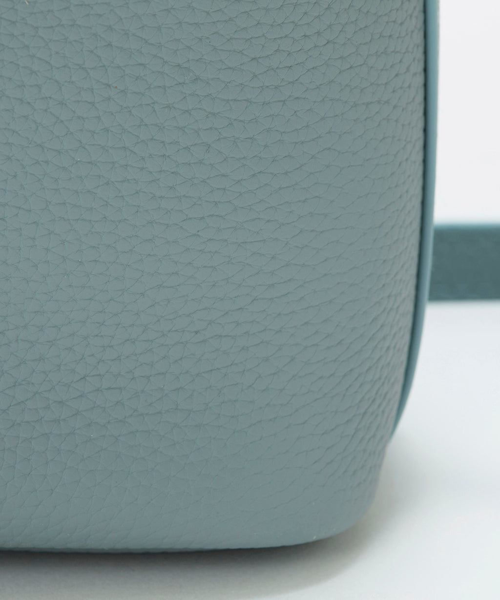 コロンとしたフォルムが可愛らしいコンビレザーのミニバッグ。