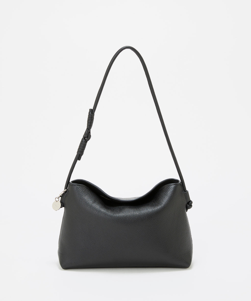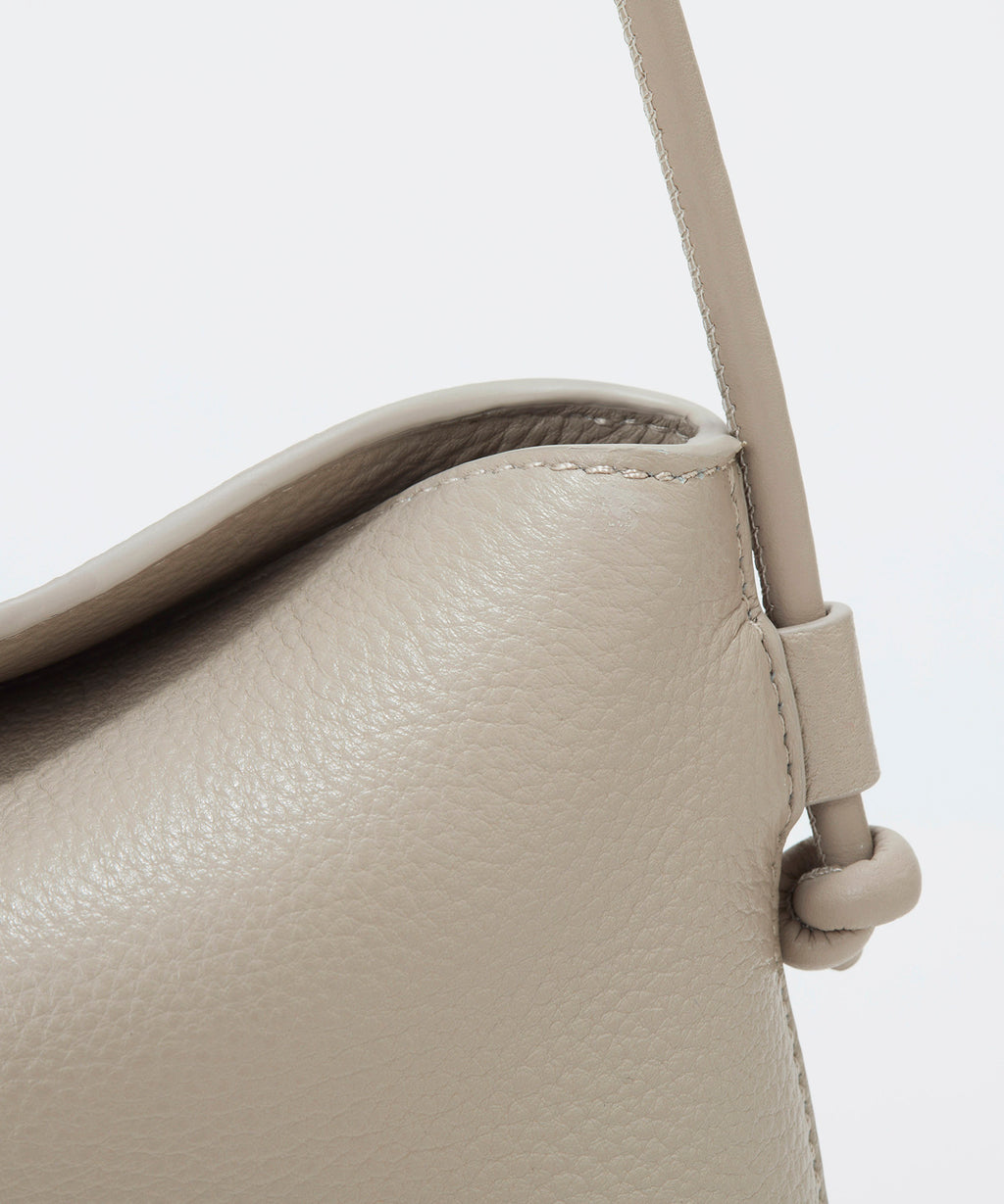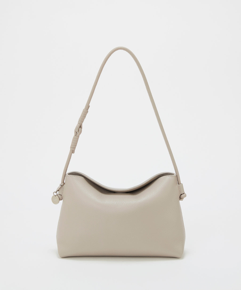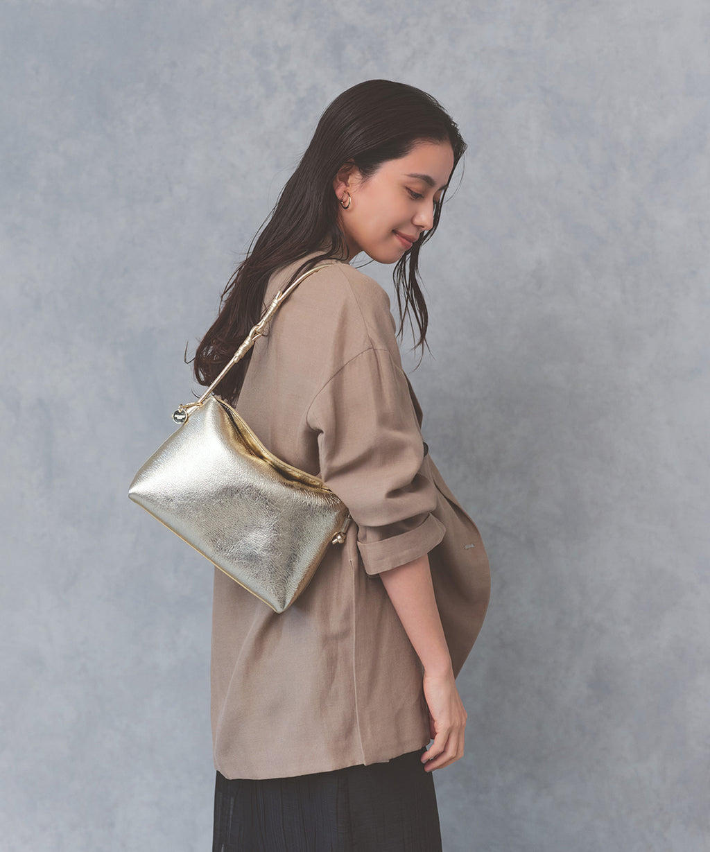 ソフトな風合いのレザーで仕立てた洗練されたフォルムに、ハンドルのノットデザインがアクセント。