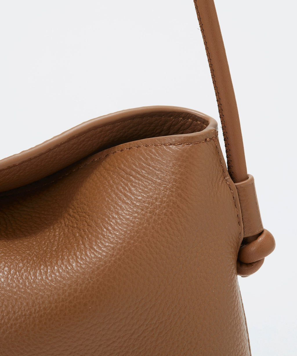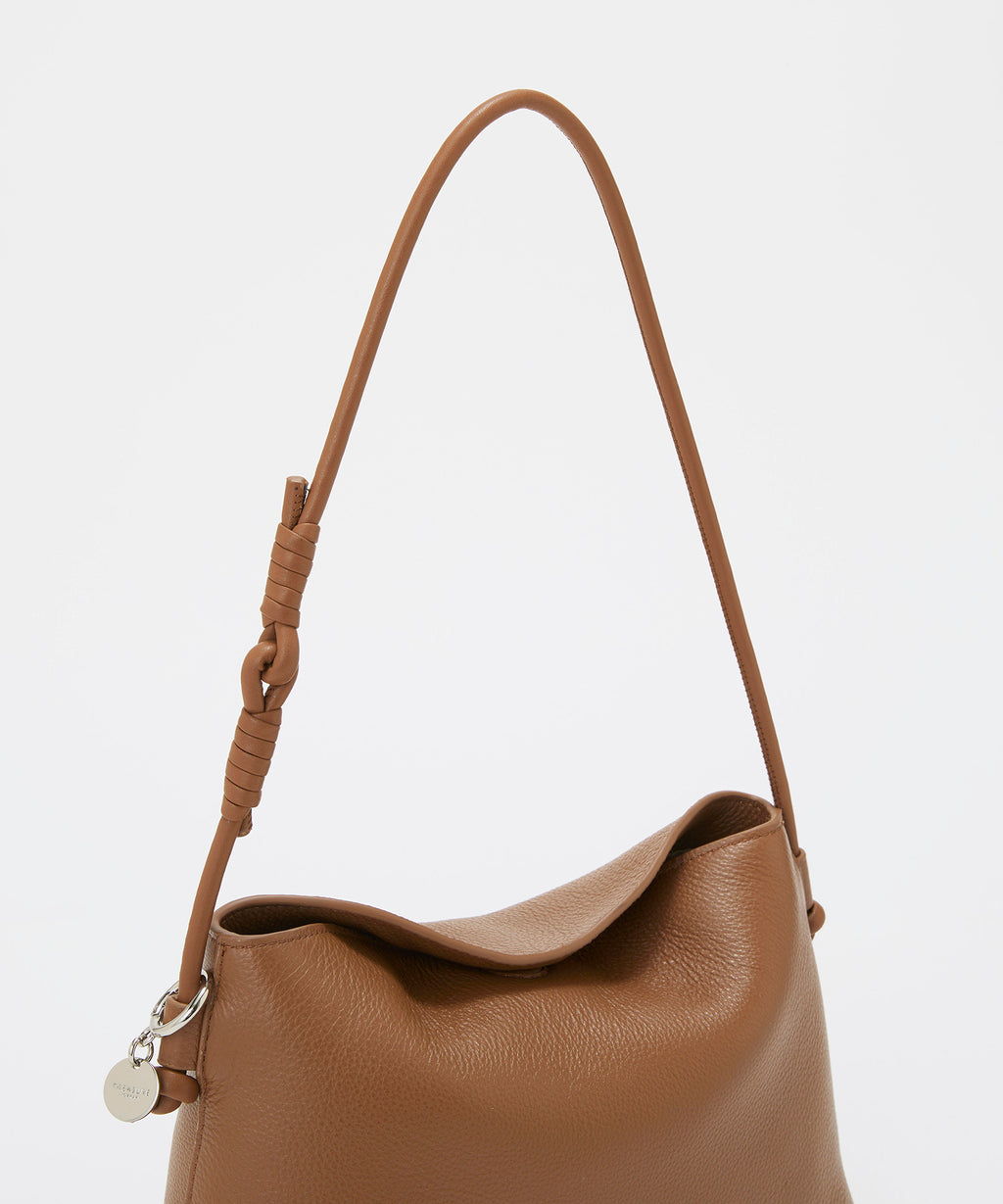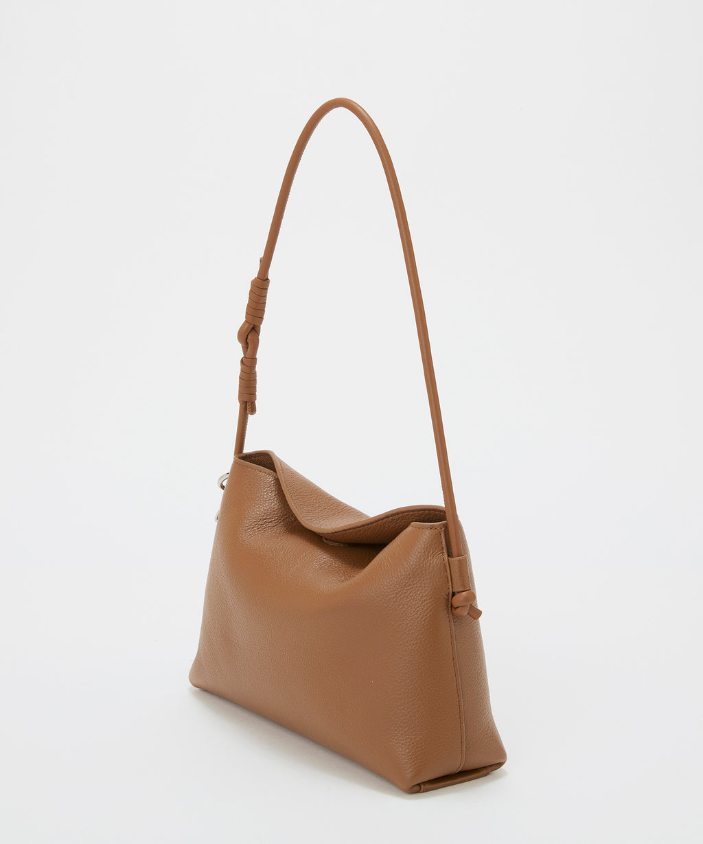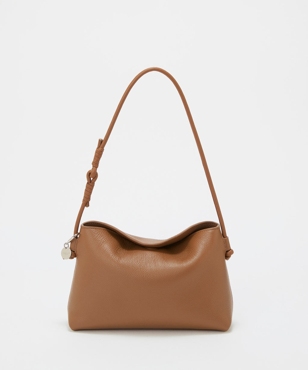 ソフトな風合いのレザーで仕立てた洗練されたフォルムに、ハンドルのノットデザインがアクセント。