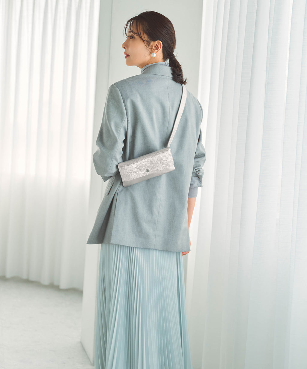 しなやかで傷の付きにくいソフトシュリンクレザーを採用し、ミニマルなフォルムで仕上げた余白を感じさせる佇まいが魅力です。