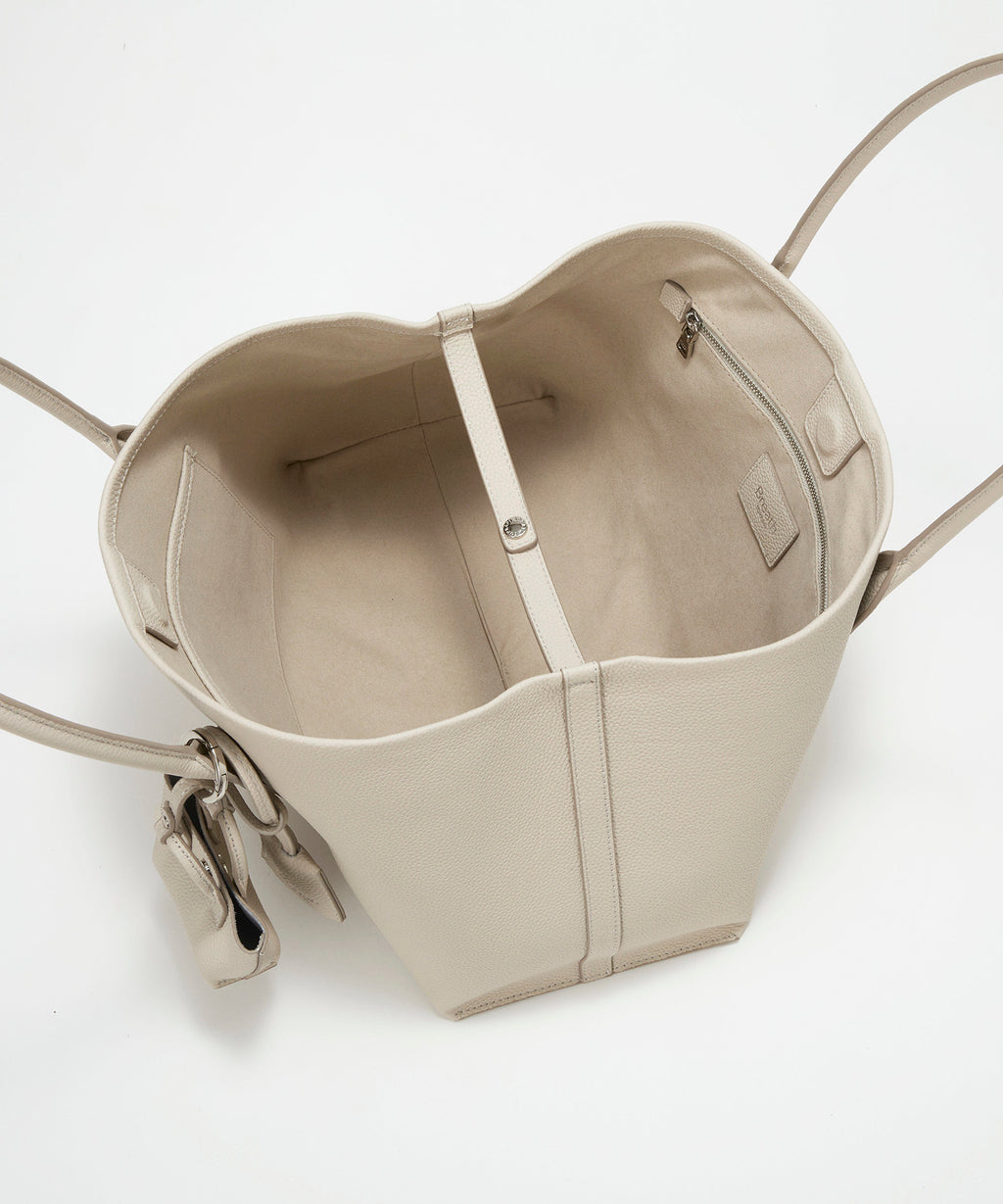 傷が付きにくいソフトなシュリンクレザーで仕立てた「ELAN」シリーズから、上品さとモダンさが静かに共存する、横長シルエットのレザートートがお目見え。