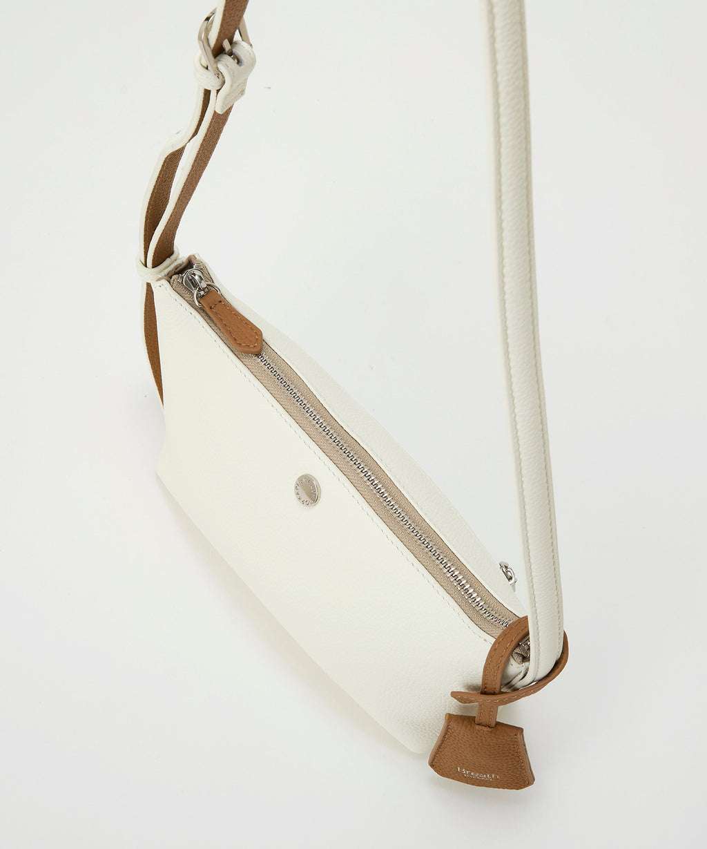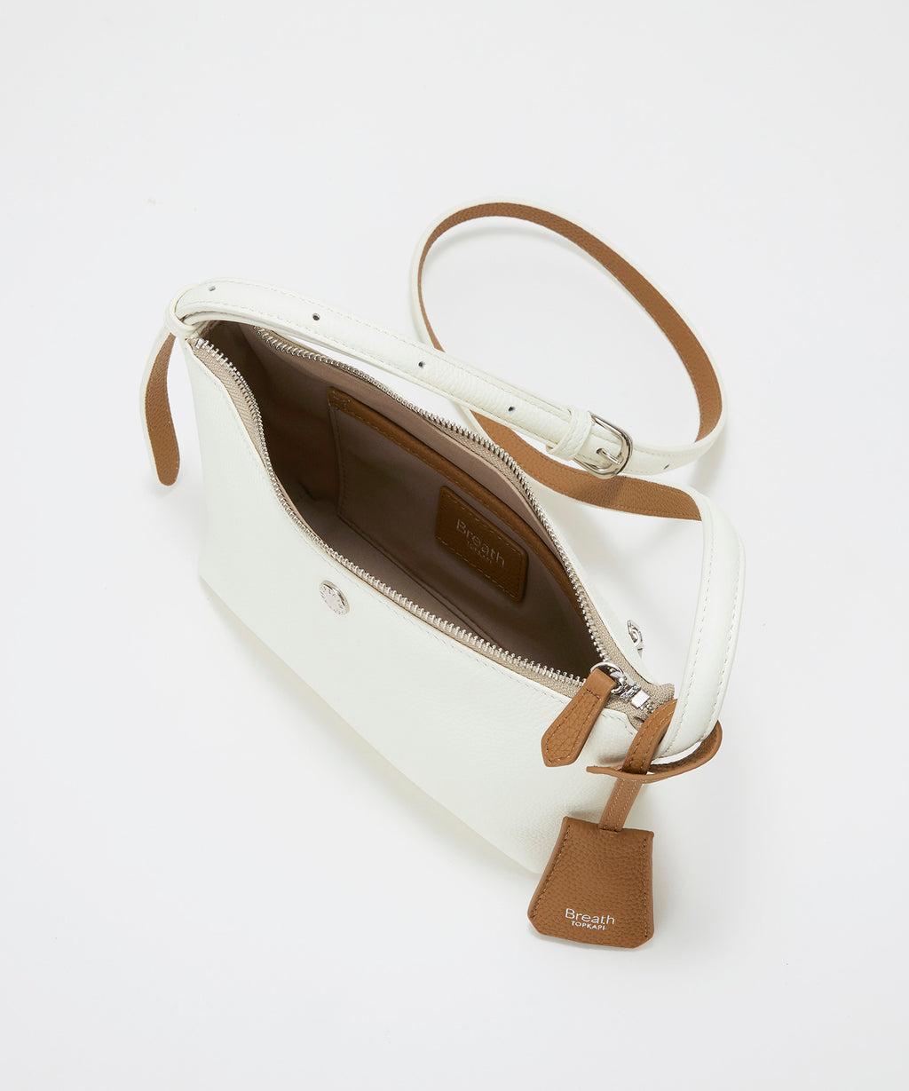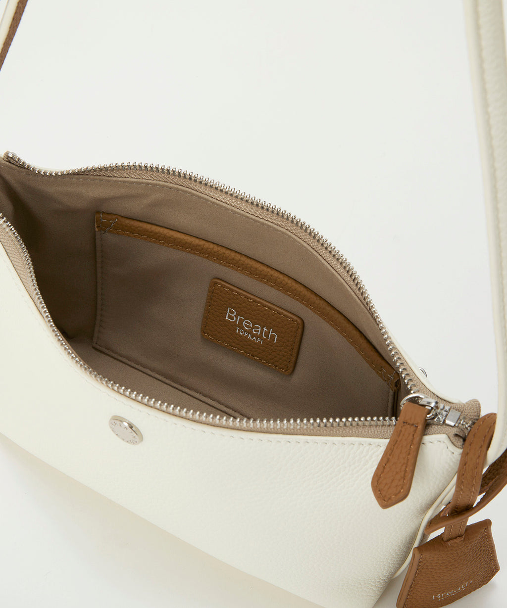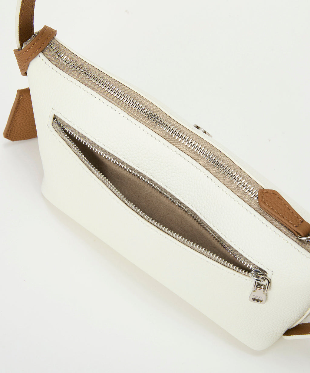 コンパクトながら背面にファスナーポケットと内側にポケットを設計し、小物の仕分けも叶えます。