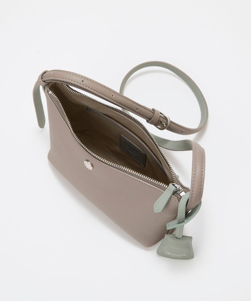 ロゴ入りのメタルホックとキークロシェットのチャームが、気品を備えるポイントに。