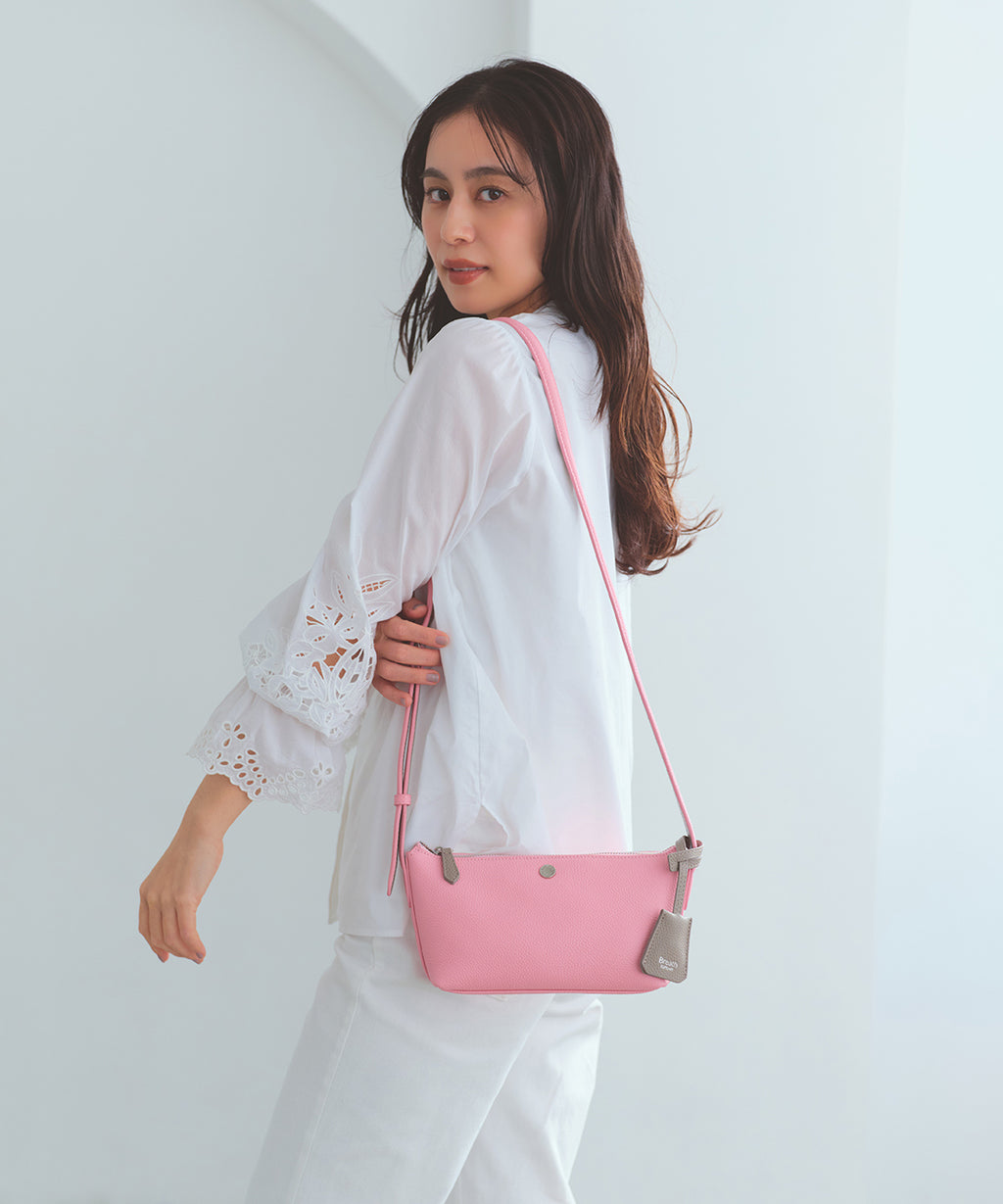 バッグの内装やショルダーベルトの裏と、チャームのカラーがさりげなくリンク。
