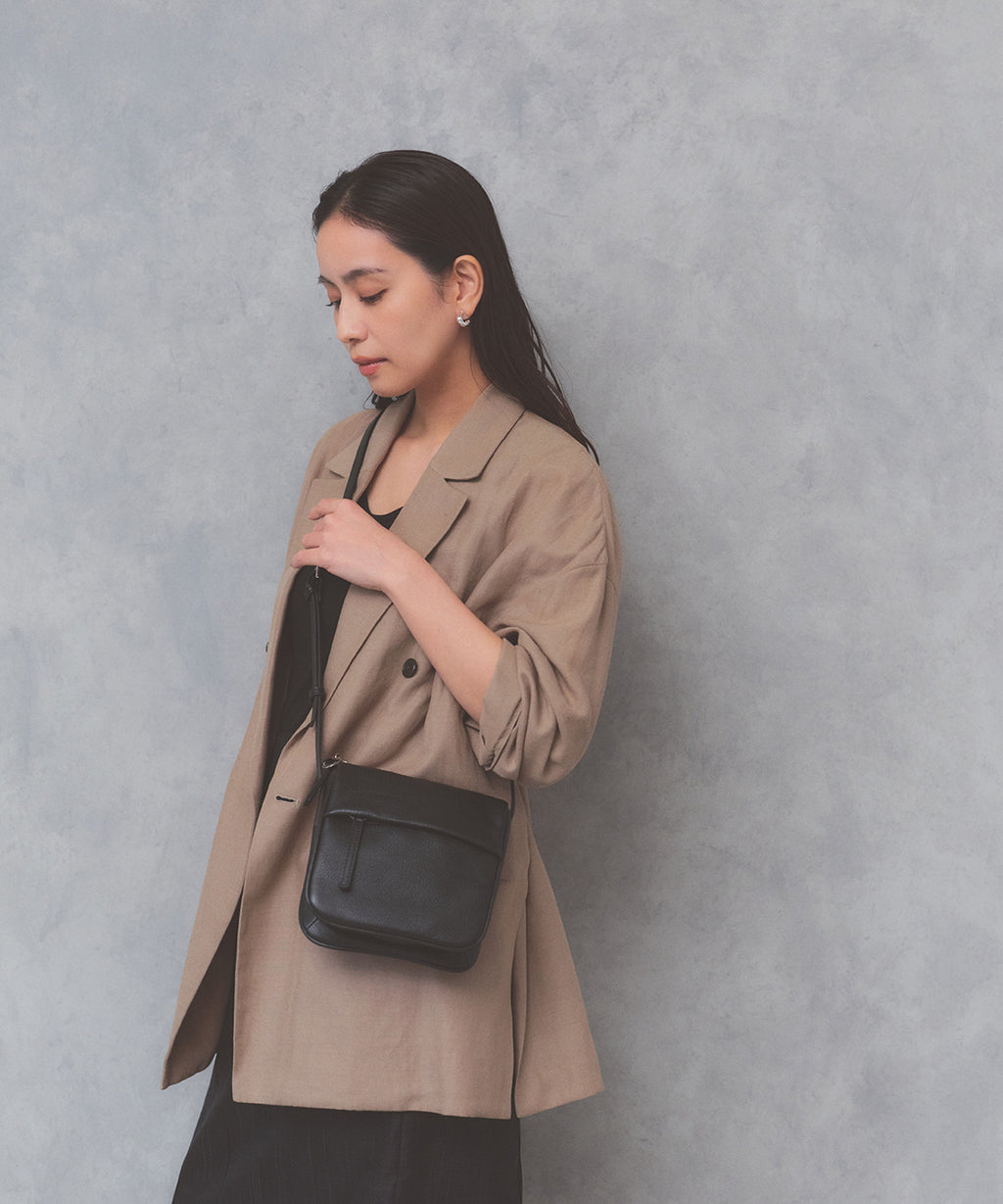 ソフトな天然のシボレザーを使用した「SUPPLE(サプル)」シリーズから、スクエアフォルムのミニショルダーが登場。