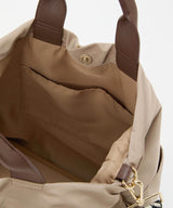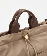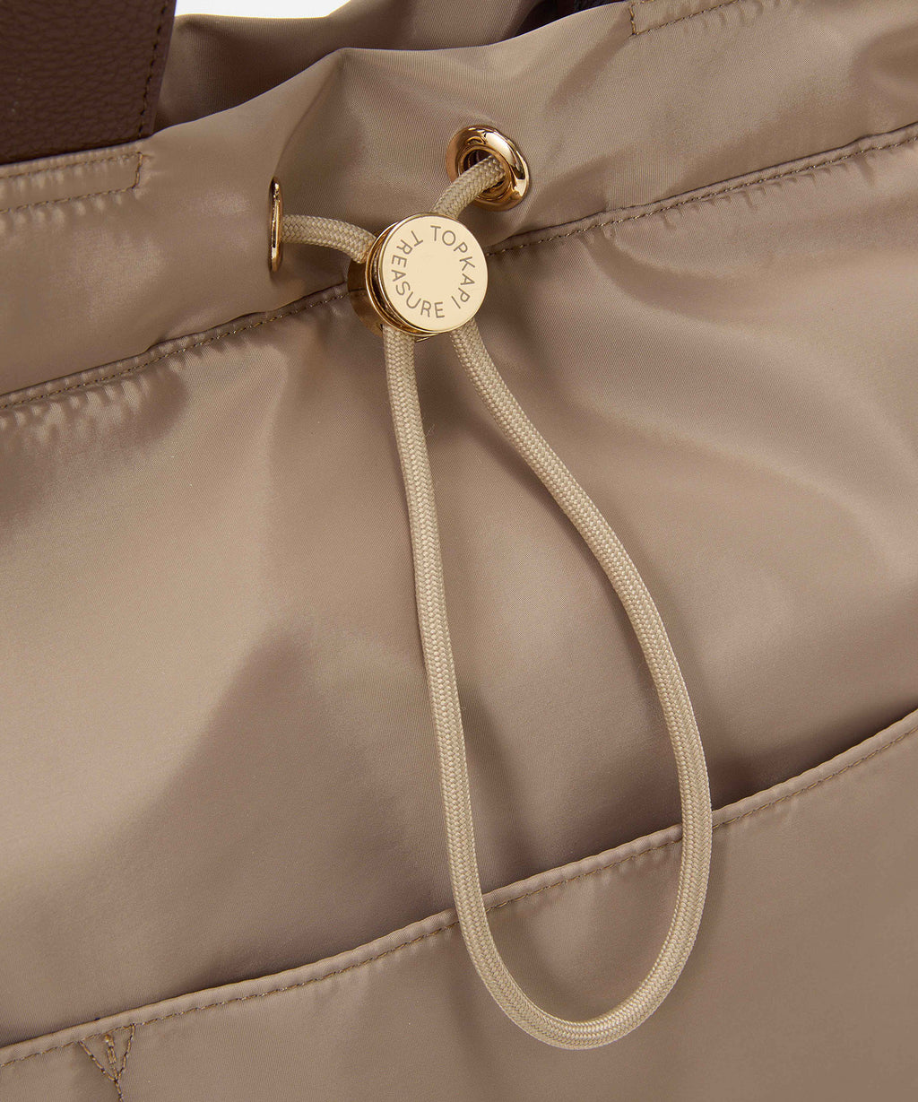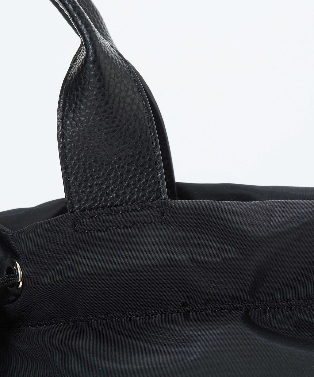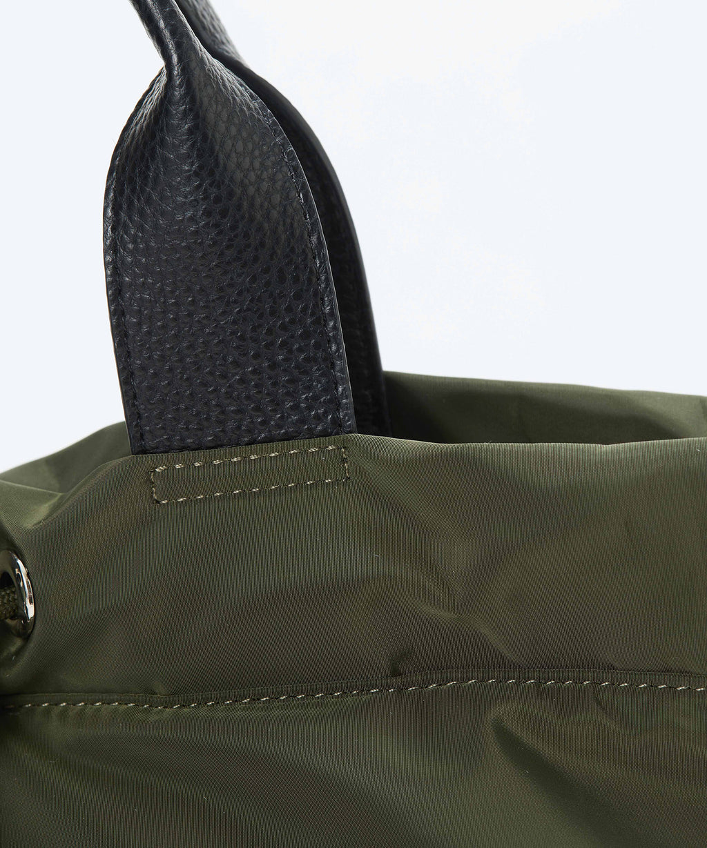 舟形トートとしてはもちろん、口元のコードを絞ると巾着バッグにチェンジ。
