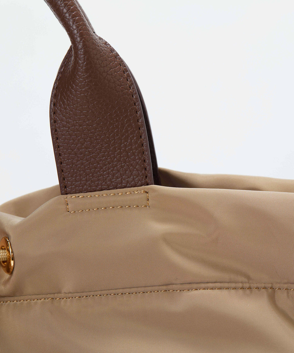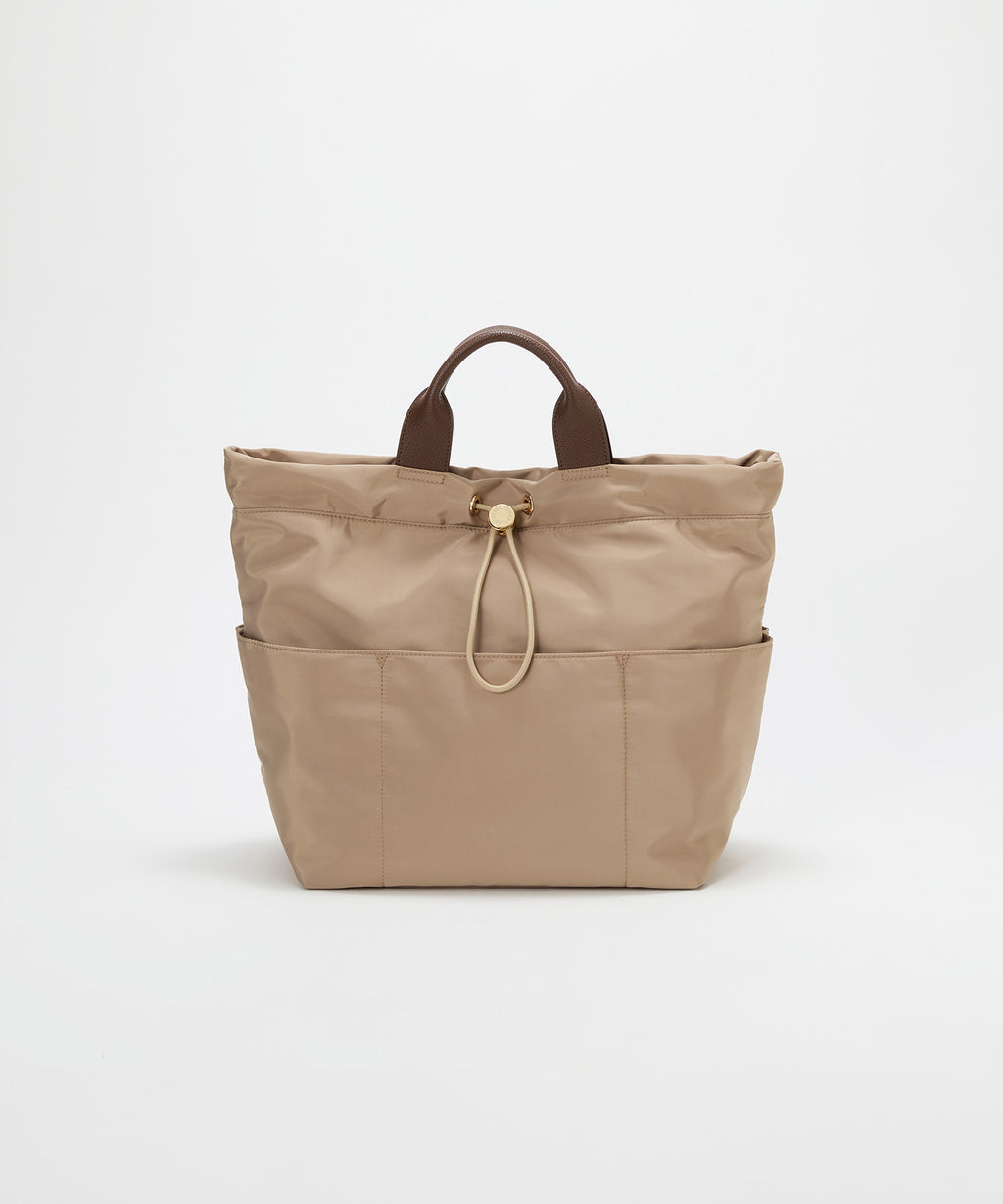 上品な光沢感のあるナイロン素材を使ったカジュアルになりすぎないデザイン。