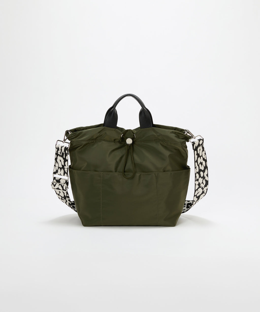 レオパード柄のテープショルダーを取り外せば、シンプルなバッグとしてもお使いいただけます。