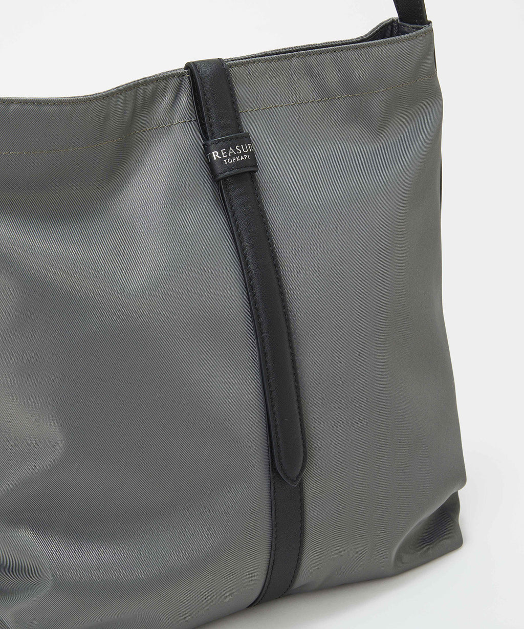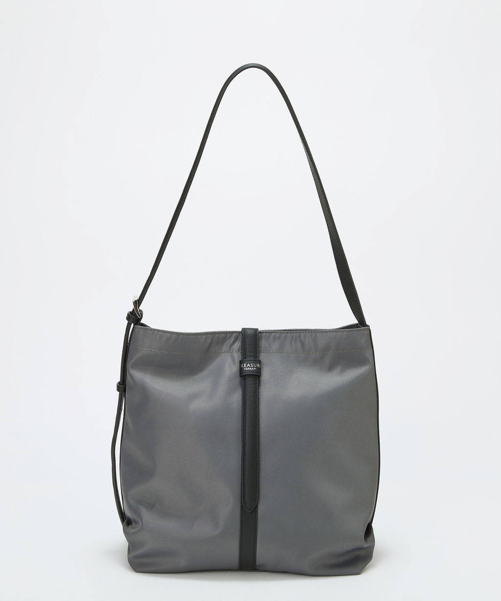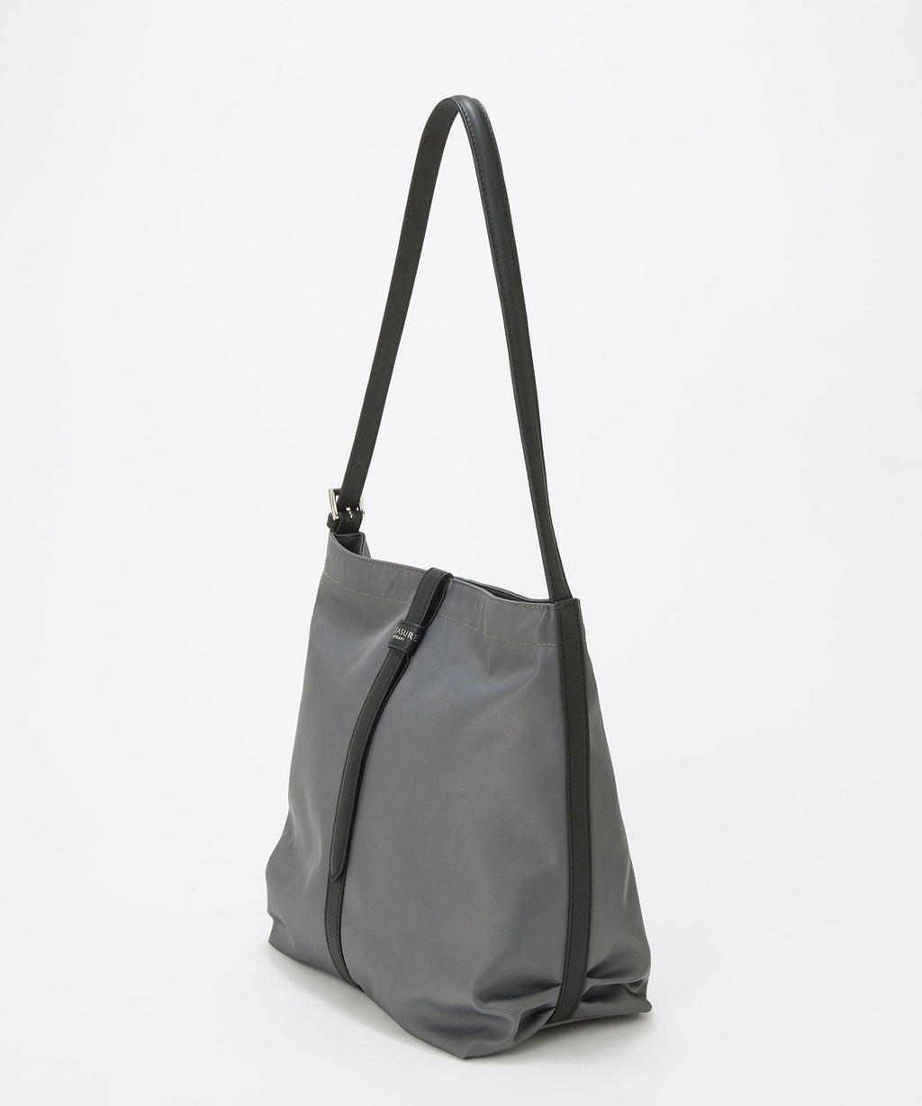スタイルを選ばずに持てるブラックとベルトのバイカラーがポイントのミディアムグレー、グレージュの3色をラインナップ。