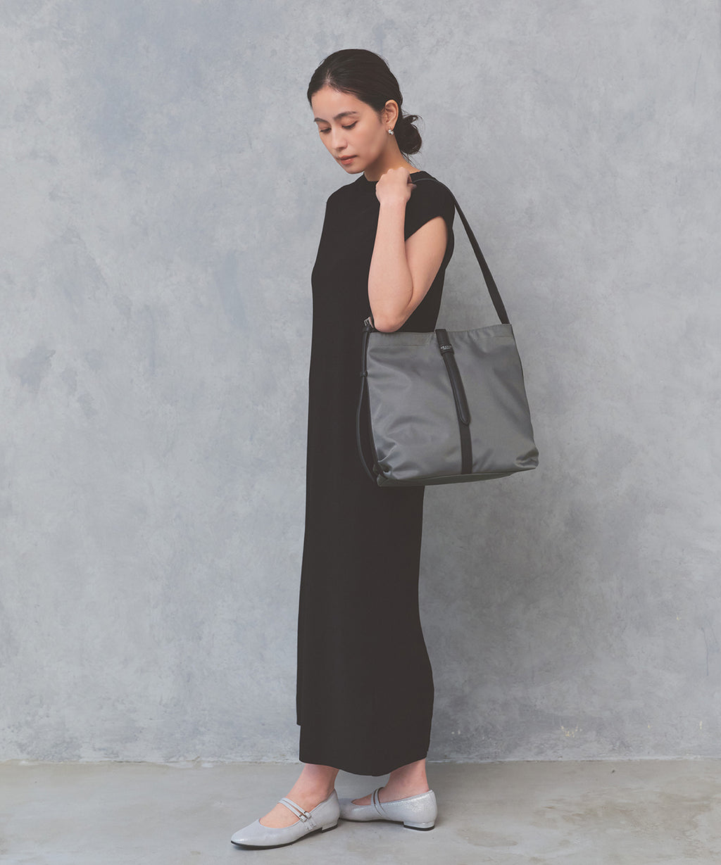 長財布やドリンクボトル、折りたたみ傘など持ち歩きたい荷物が程よく収まり、休日はもちろん荷物が少ない日の通勤、旅先でのお出かけ用バッグとしても重宝しそう。
