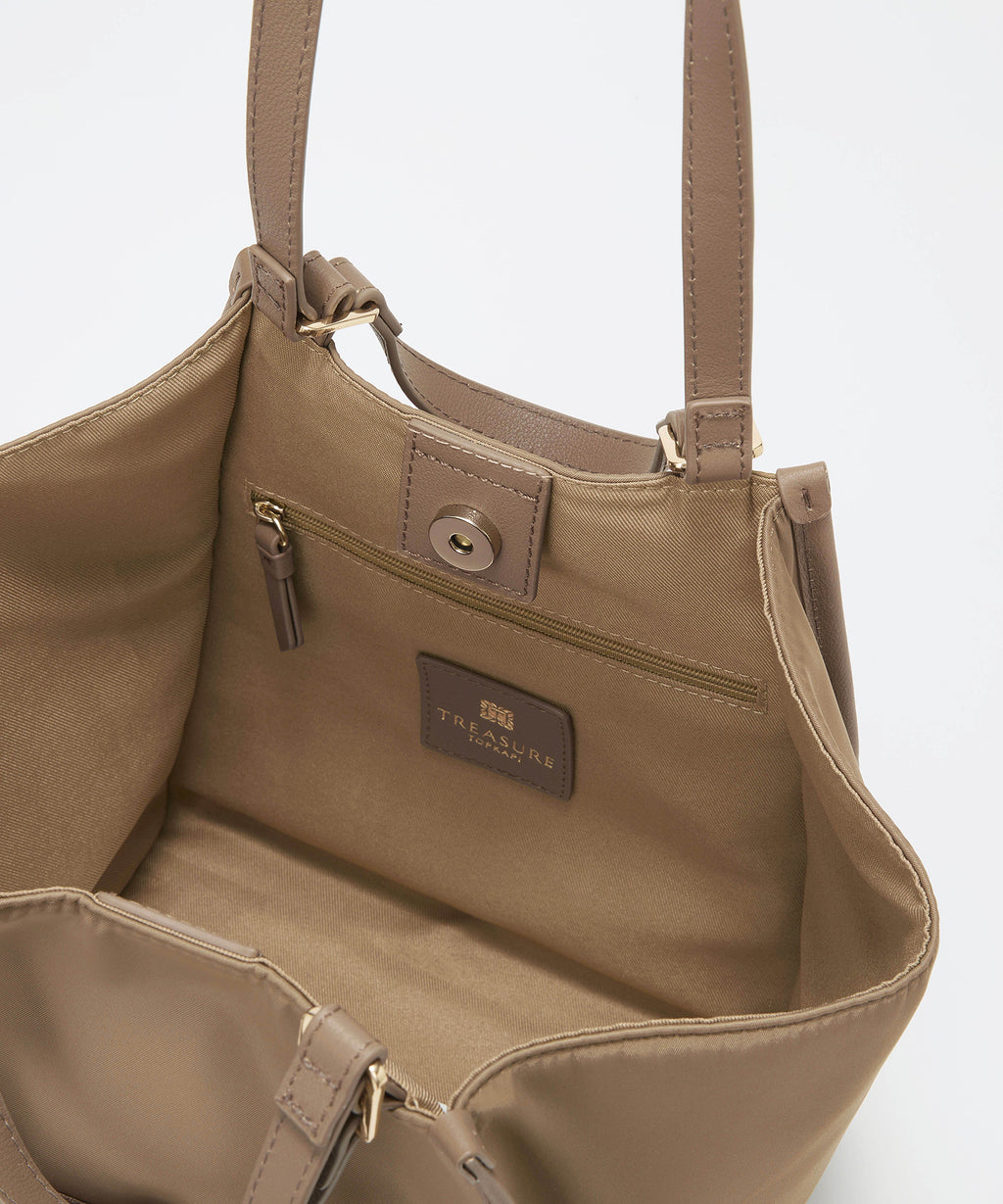 口元はマグホック仕様で大きく開き、荷物の出し入れもスムーズ。