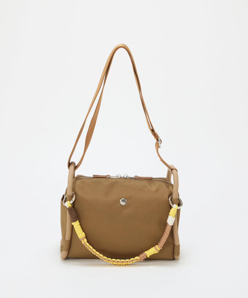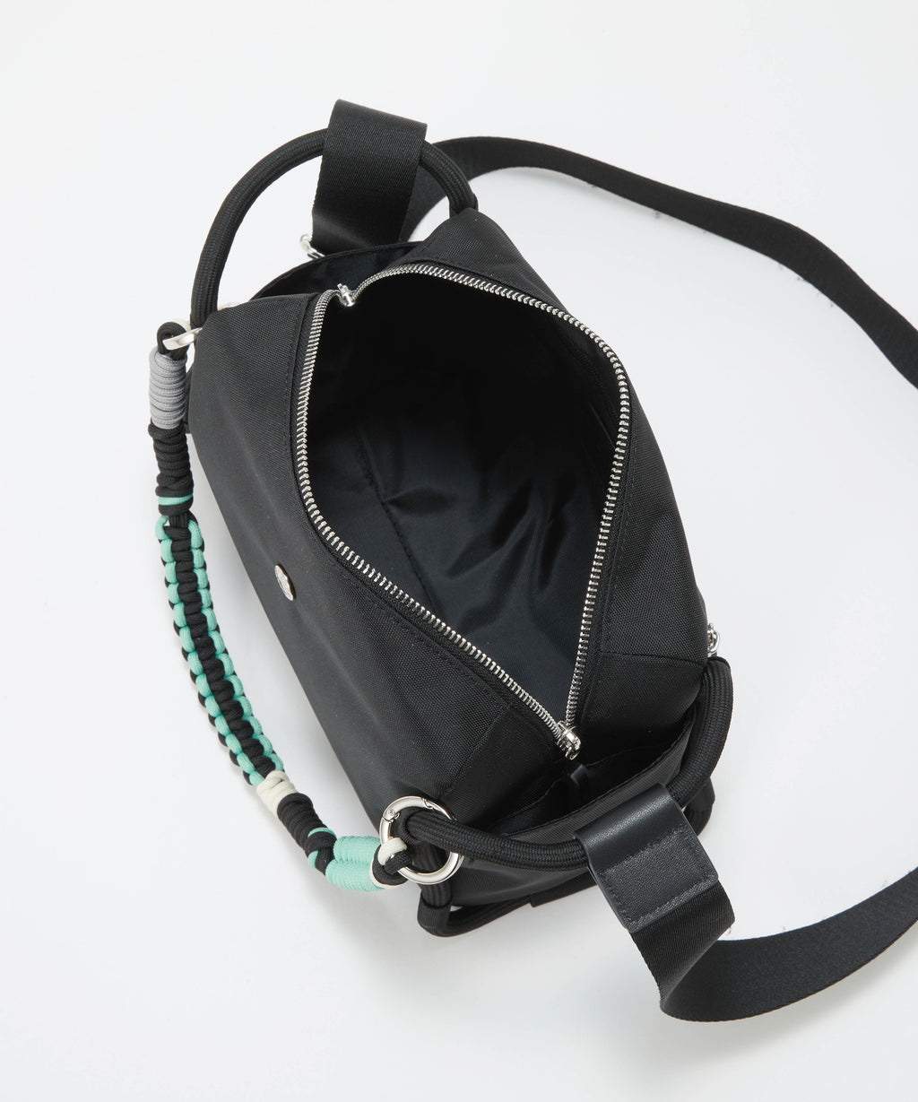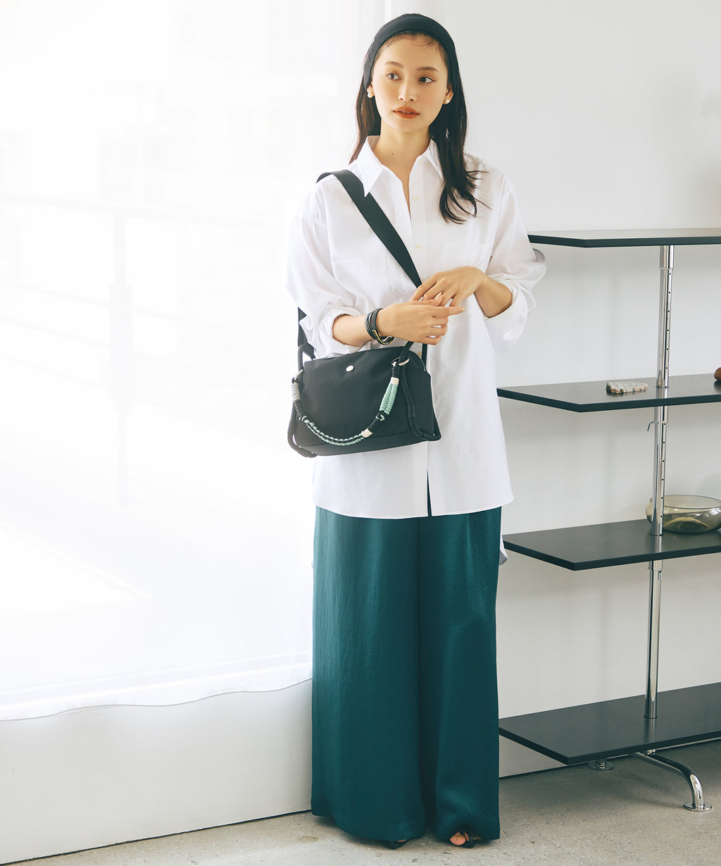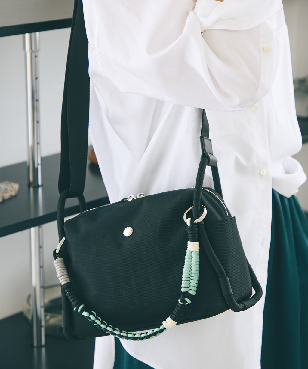 ロープ使いが特徴的なショルダーバッグは、コンパクトながらもサイドまで大きく開くファスナートップが快適な荷物の出し入れを叶えます。