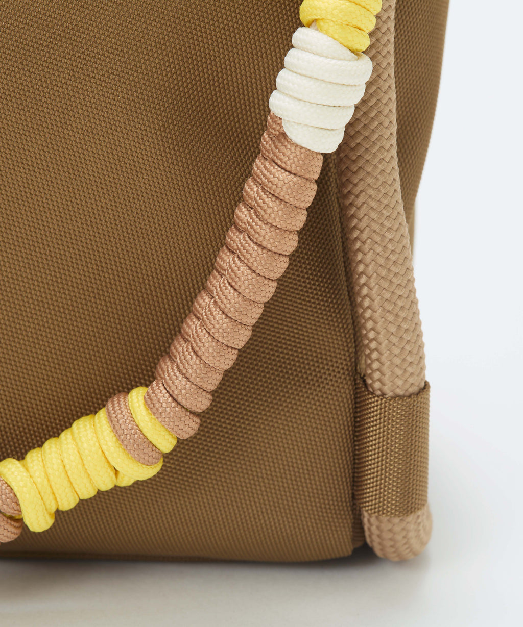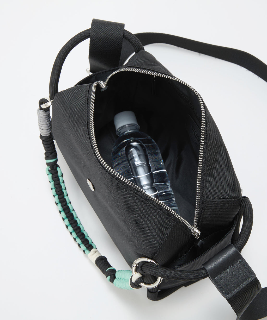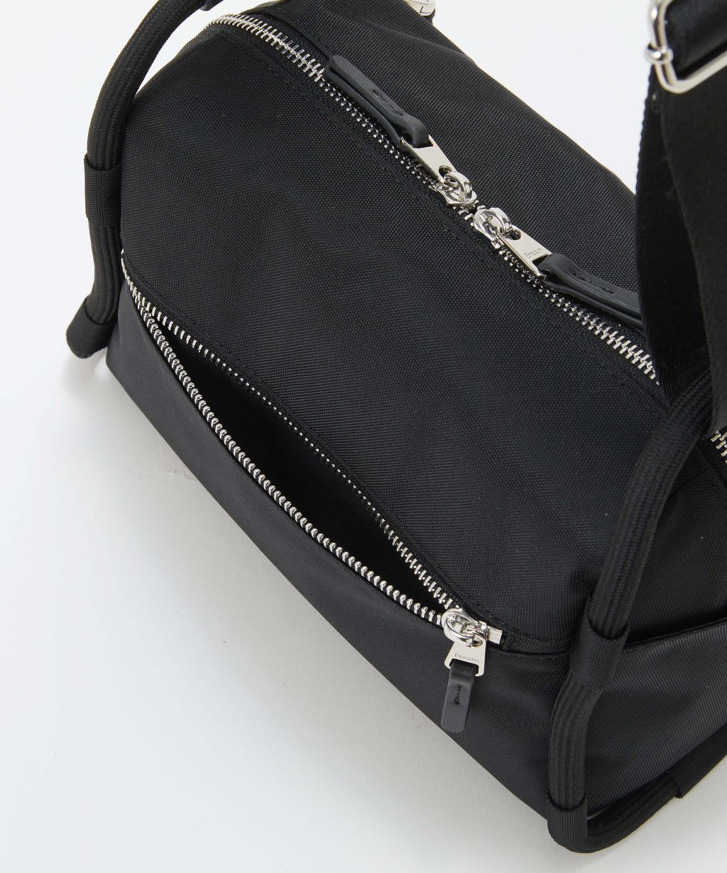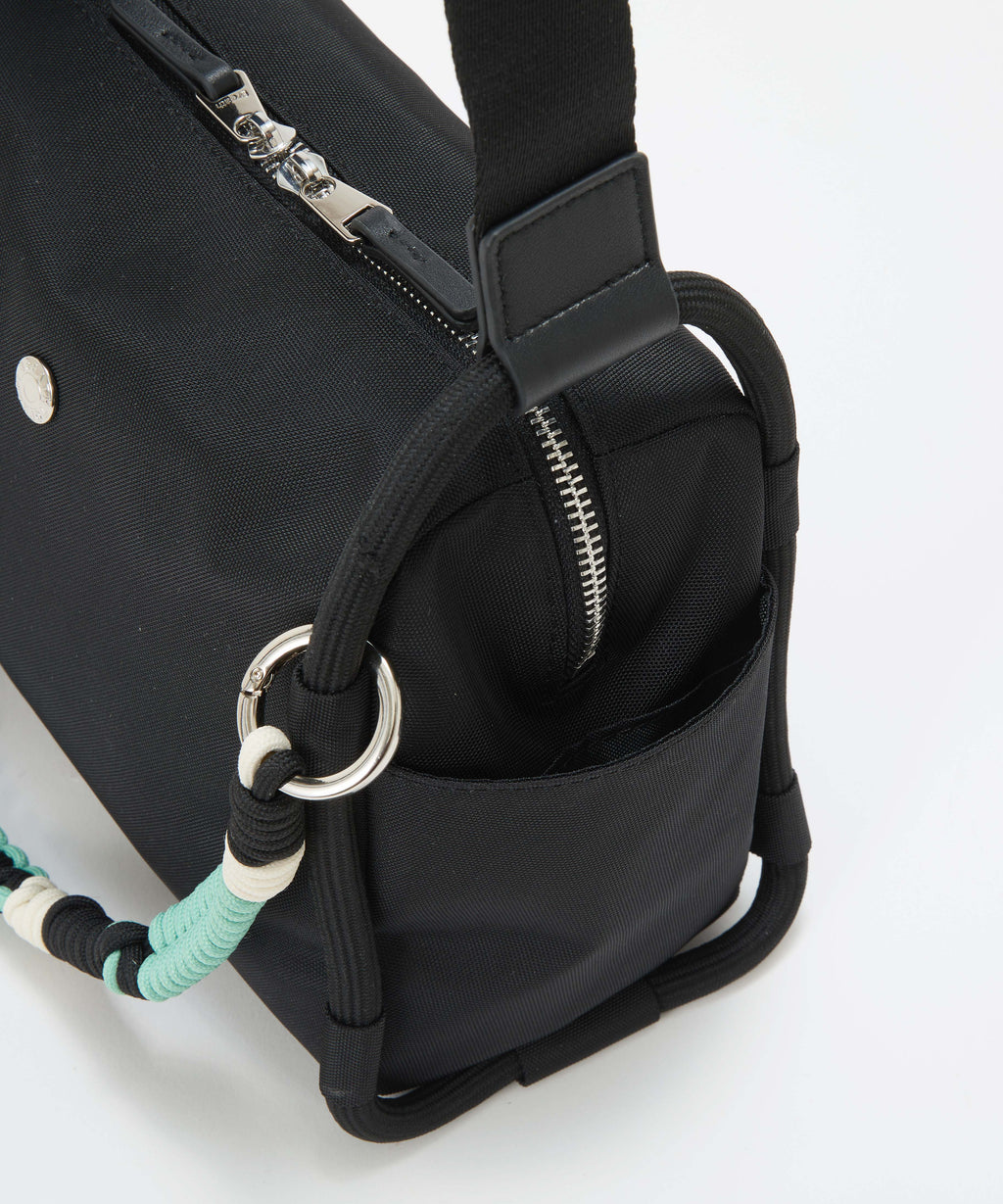 ロープ使いが特徴的なショルダーバッグは、コンパクトながらもサイドまで大きく開くファスナートップが快適な荷物の出し入れを叶えます。