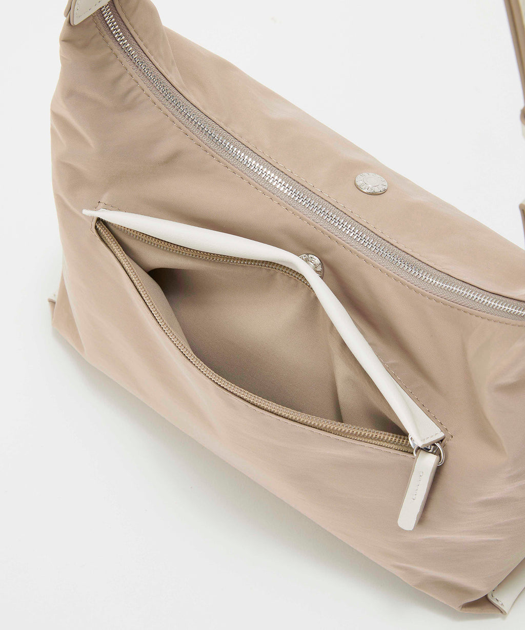 ワンウォッシュ加工を施した撥水ナイロンに、動きのあるレザーハンドルを組み合わせたシリーズで、ネーミングはしなやかなハンドルの動きに由来。