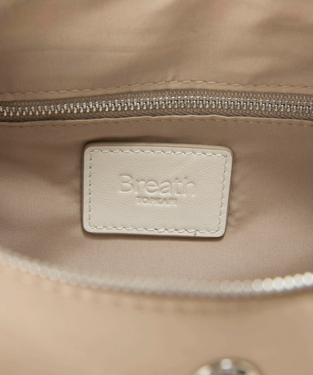 トップはロングのレザー引き手が印象的なファスナー開閉式で、防犯面も安心。