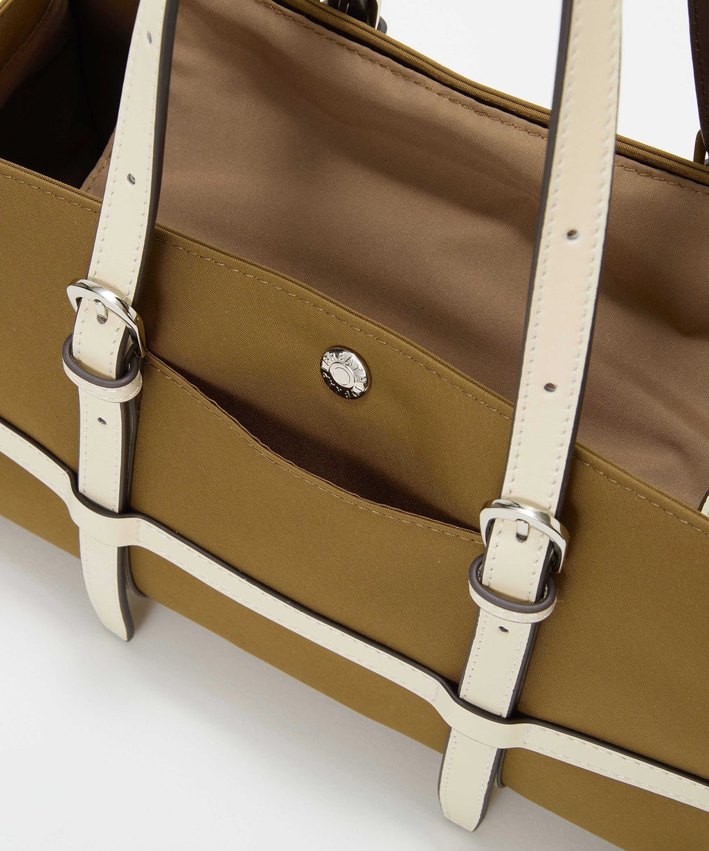 ベルト仕様のハンドルは長さ調整が可能で、手持ちから肩掛けまでコーディネートのバランスや荷物の重さなどに応じて対応します。