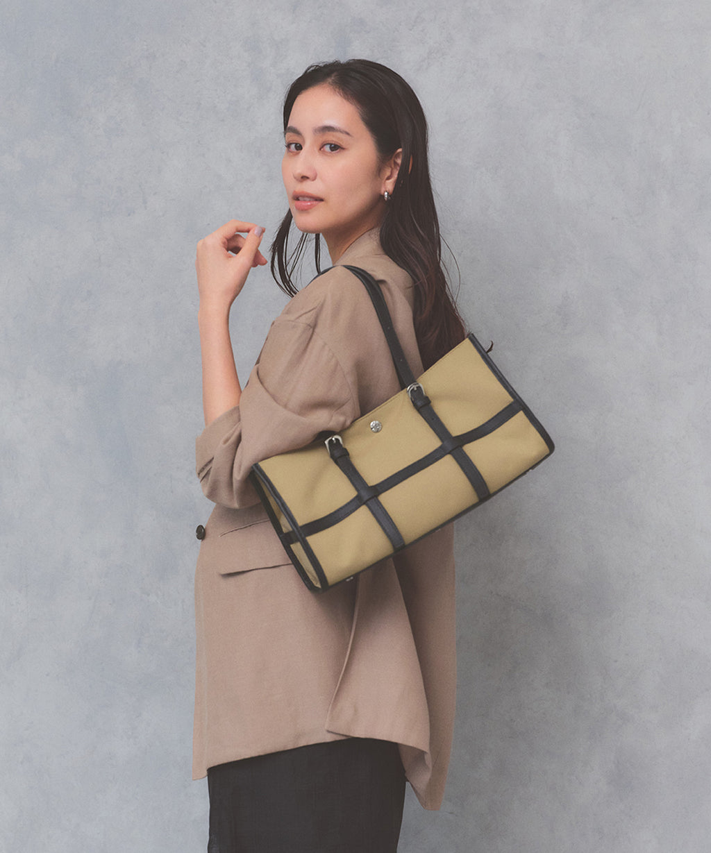 目を惹く格子状のデザインがモダンな雰囲気の「FRAME(フレーム)」シリーズから、小ぶりなワイドトートが登場。