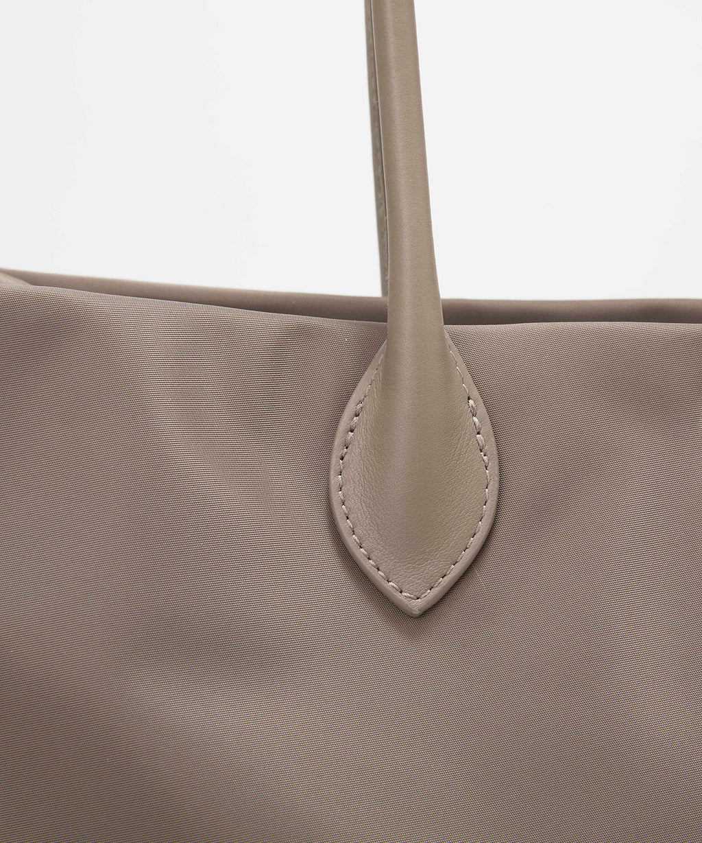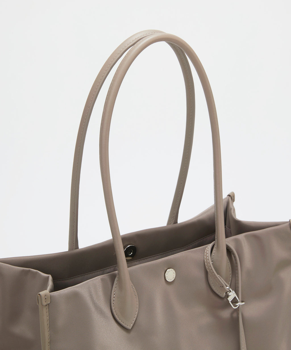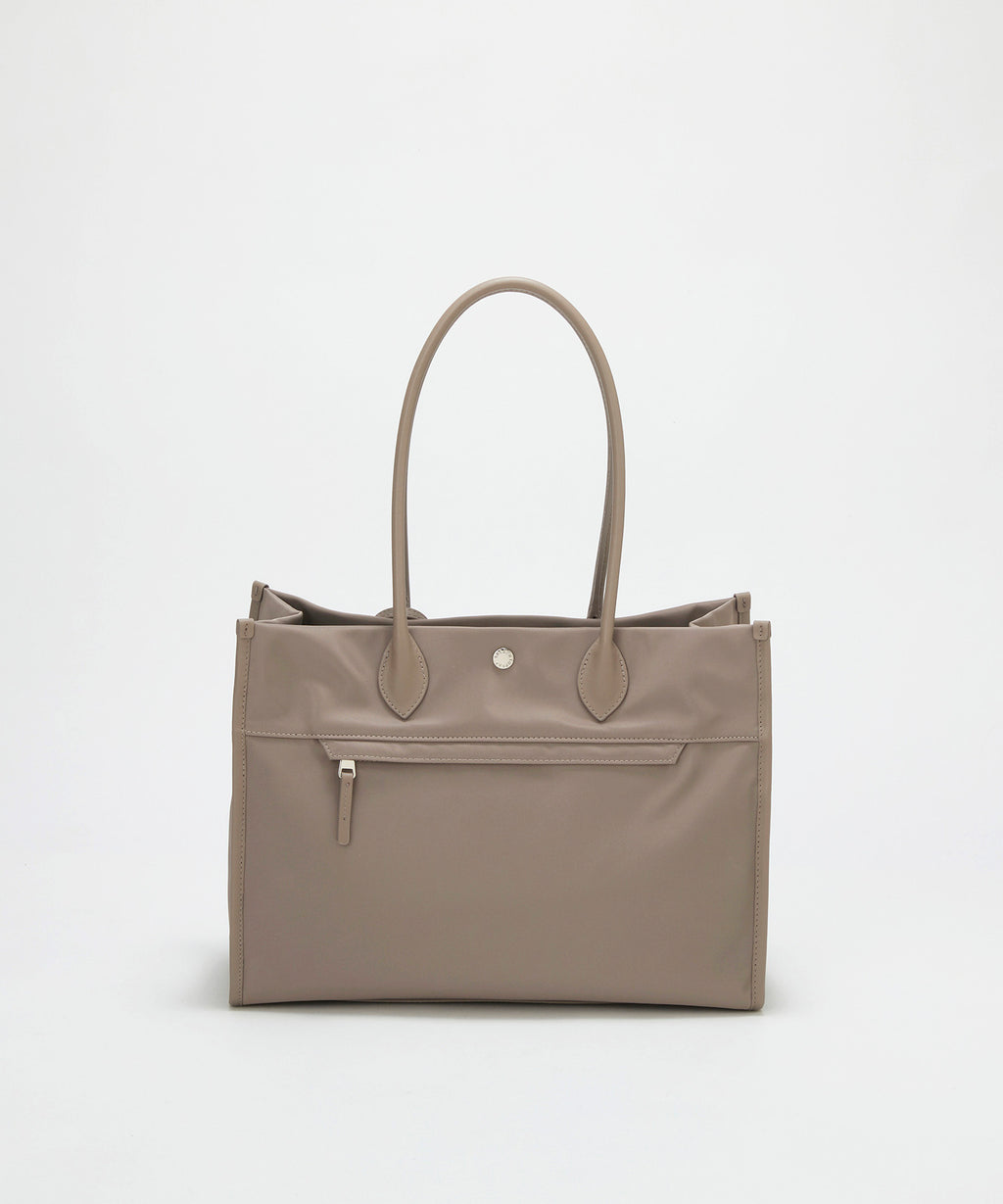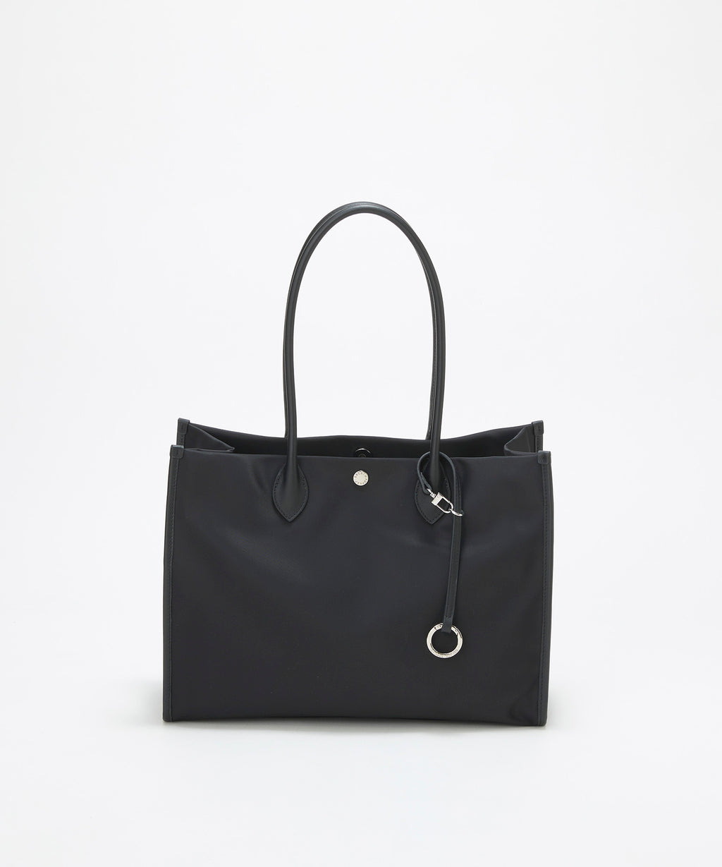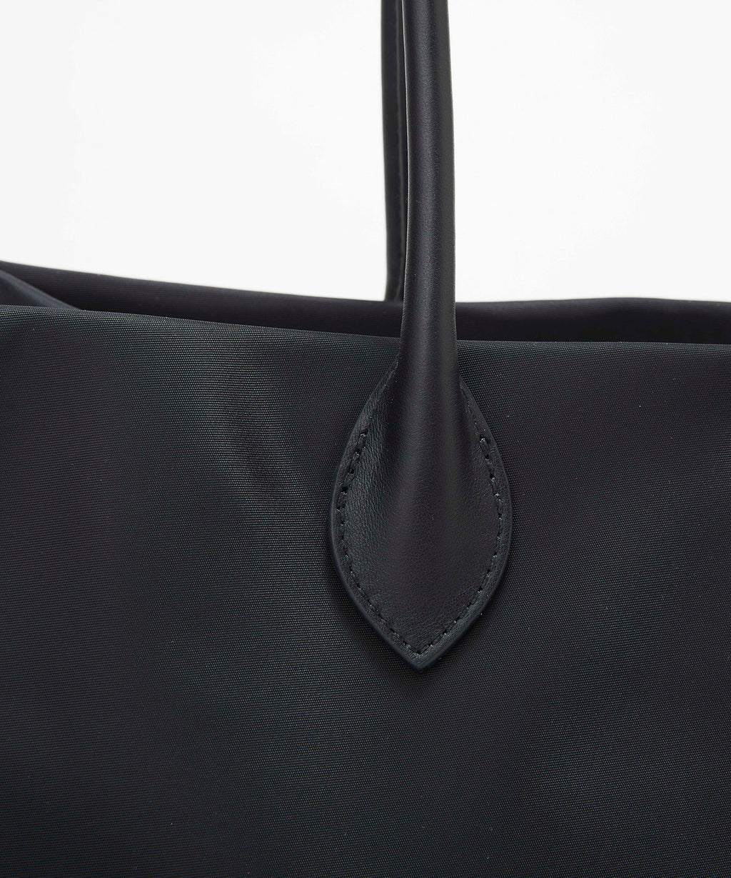 美しい艶のある撥水ナイロンと端正なスクエアフォルム。シンプルなのに装いを品よく引き締めるトートバッグが登場です。