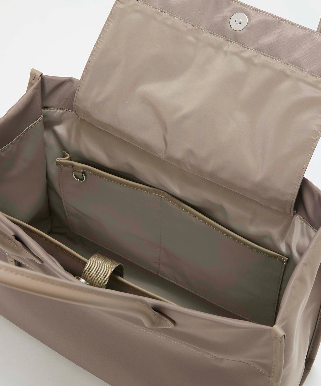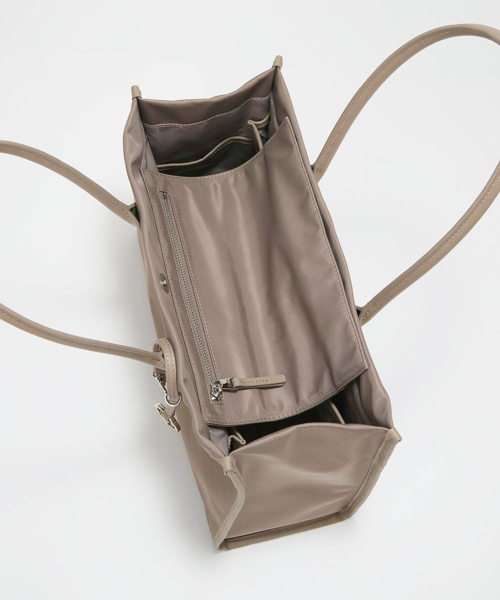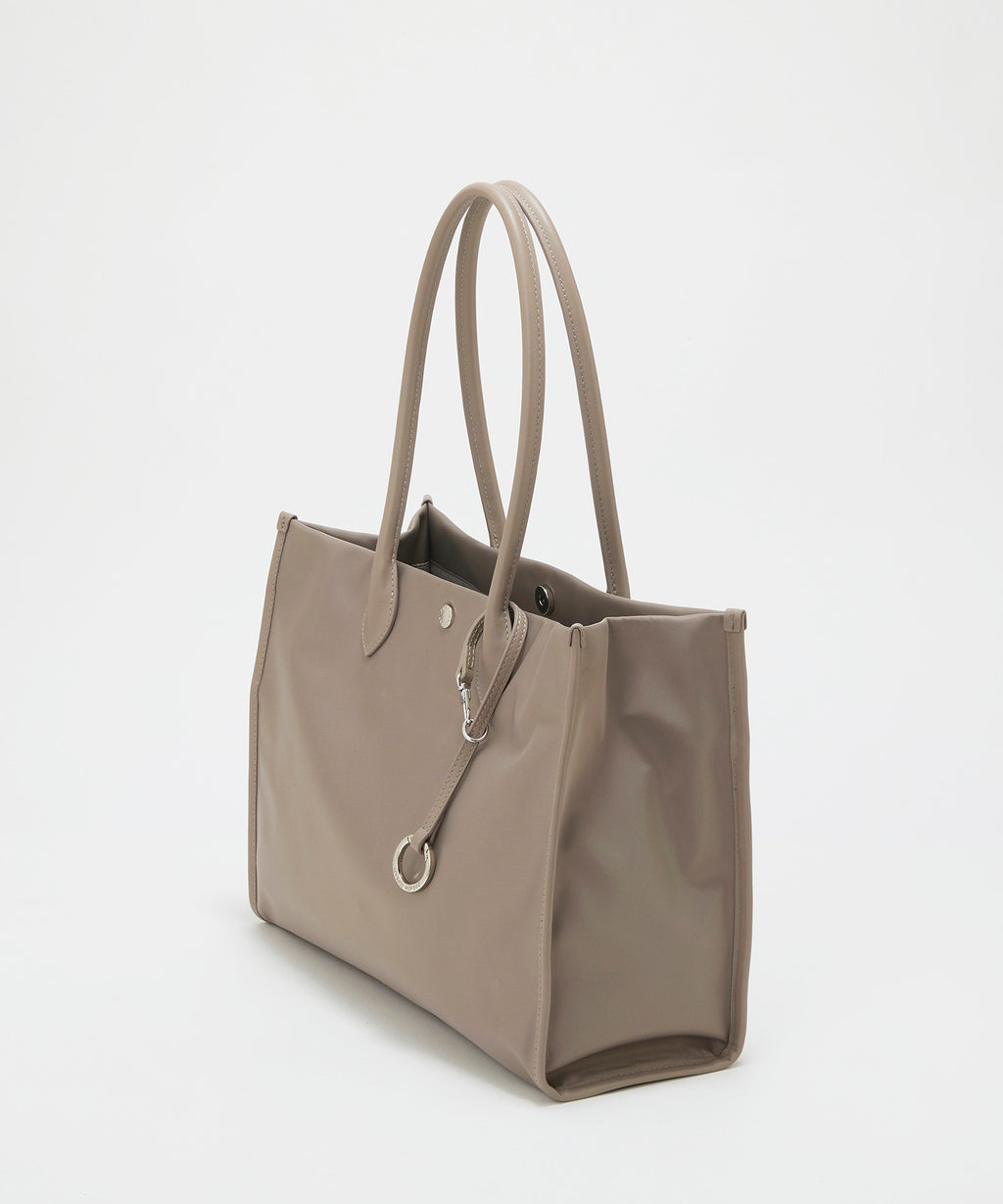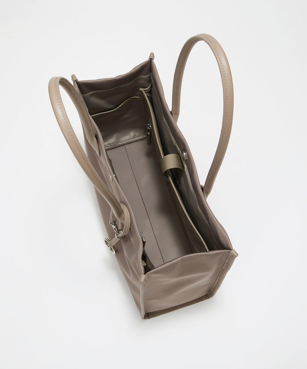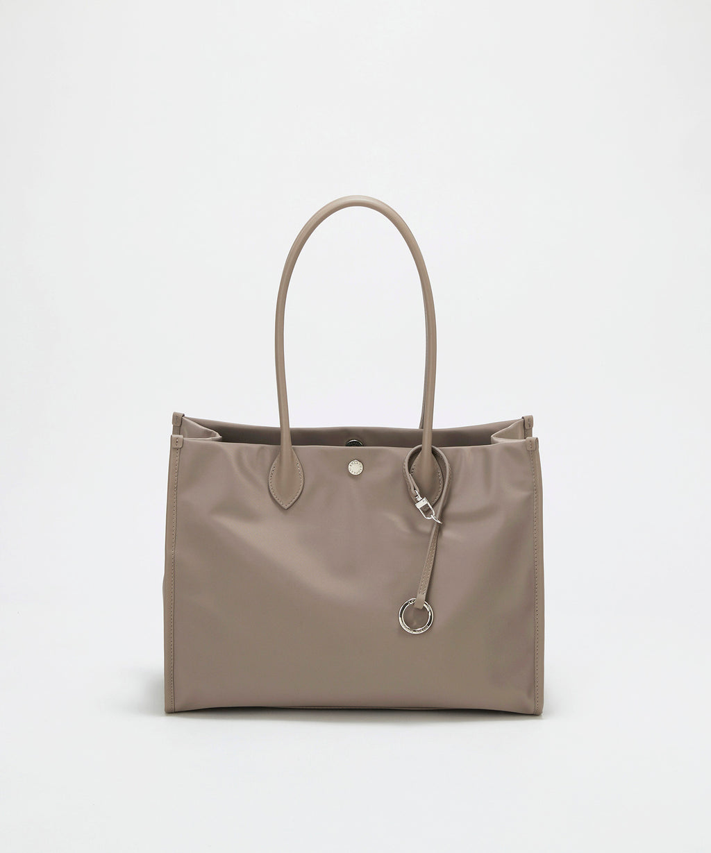 美しい艶のある撥水ナイロンと端正なスクエアフォルム。シンプルなのに装いを品よく引き締めるトートバッグが登場です。