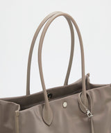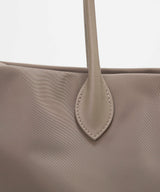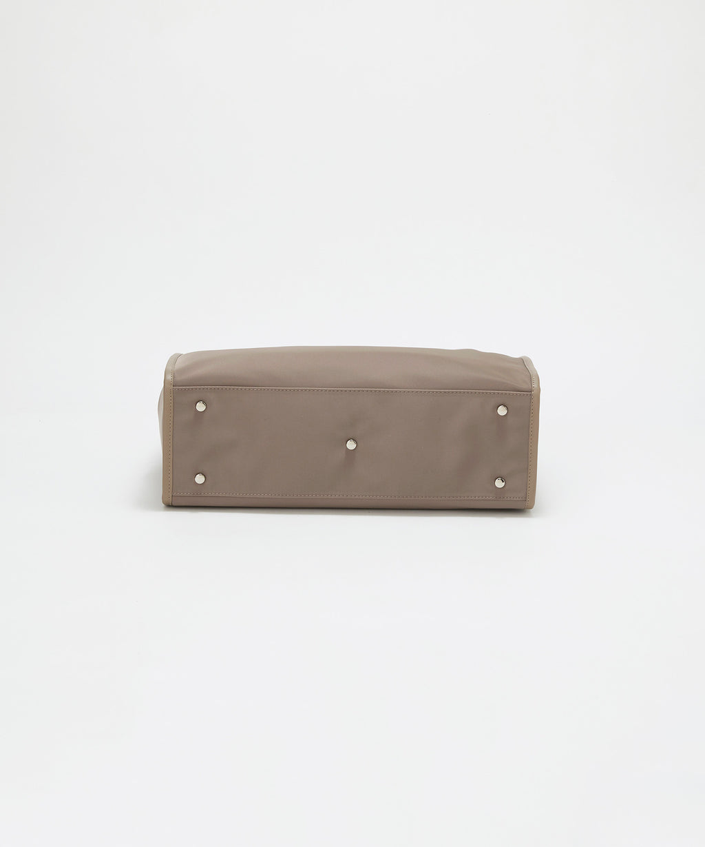 肩にすっとなじむ細身のレザーハンドルや、角の擦れや型崩れを防ぐレザートリミング、底面の汚れに配慮した底鋲など、日常使いを想定したディテールが随所に。