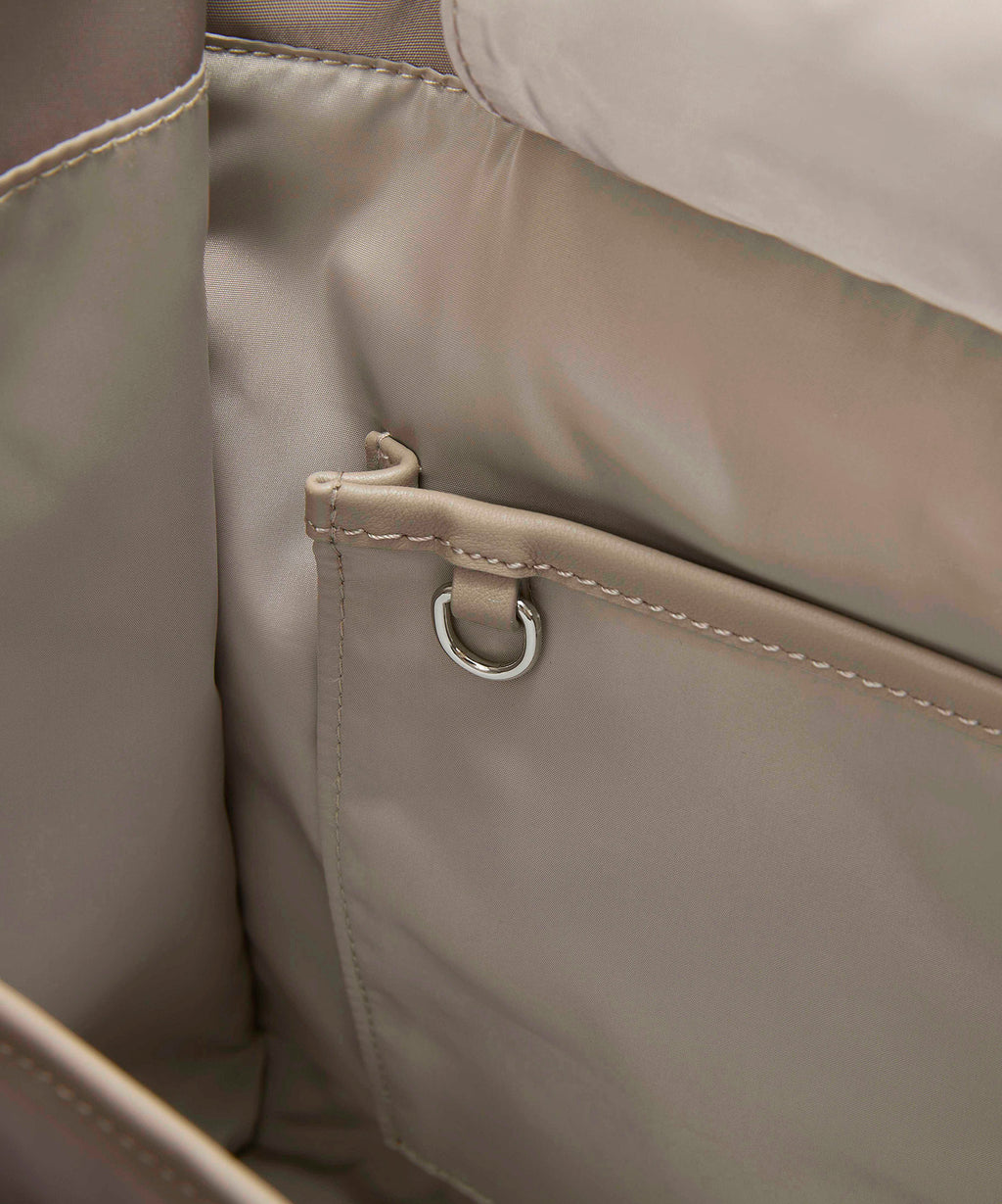 内側の吊りポケットは、荷物が増えた時の目隠しフラップとしても活躍。
