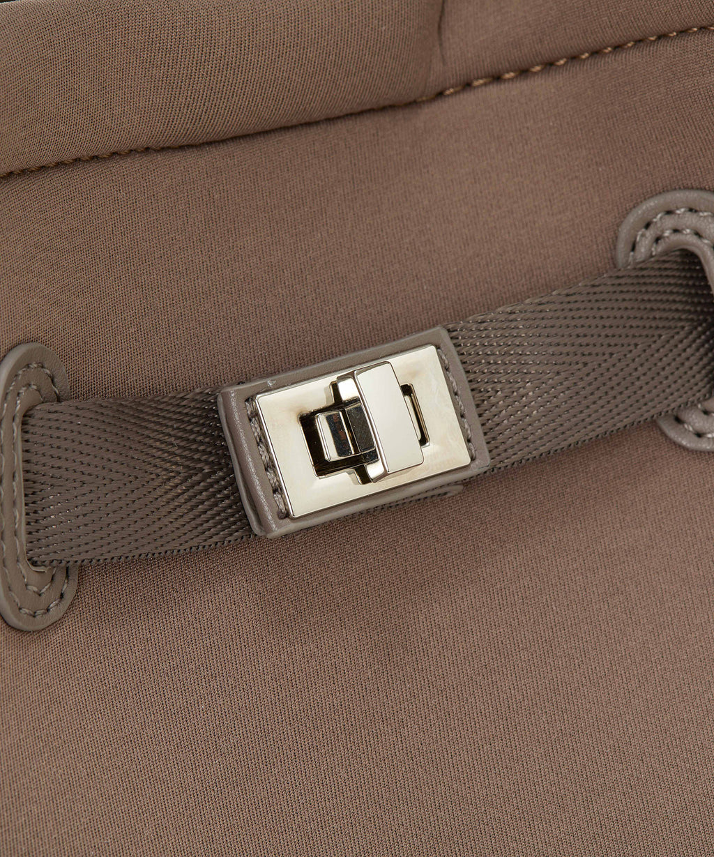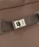スポーティーな素材にベルトとゴールドカラーの金具がアクセント。