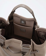 内装の両サイドにはスマートフォンや貴重品などの収納に便利なポケット、内装の口元部分にはリップなどの小物を入れておける吊り下げポケット付きで機能性抜群です。