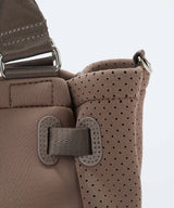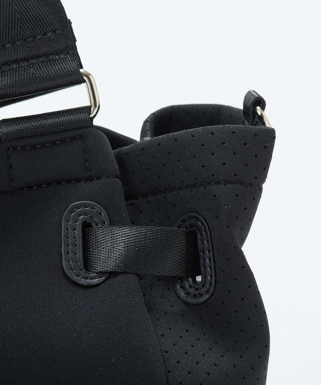 スポーティーな素材にベルトとゴールドカラーの金具がアクセント。
