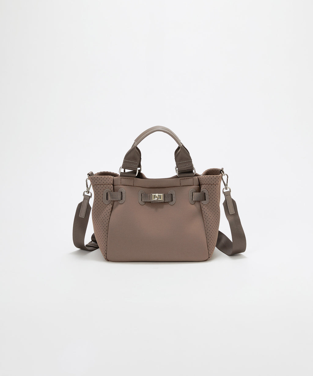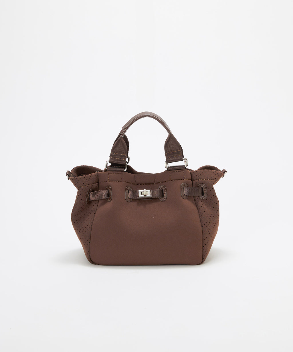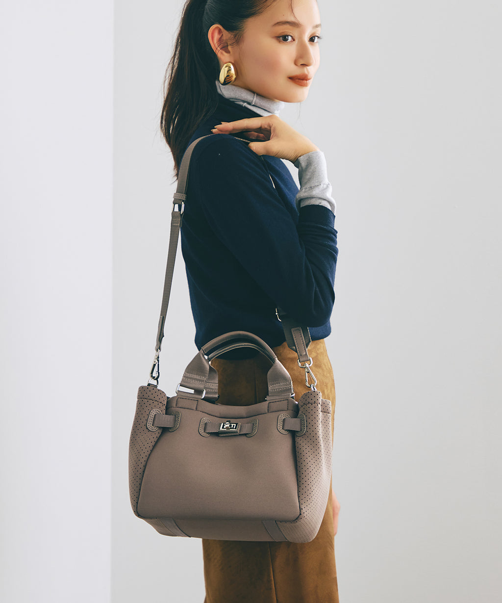 カジュアルなお出かけにぴったりなネオプレーン生地のミニトートバッグ。
