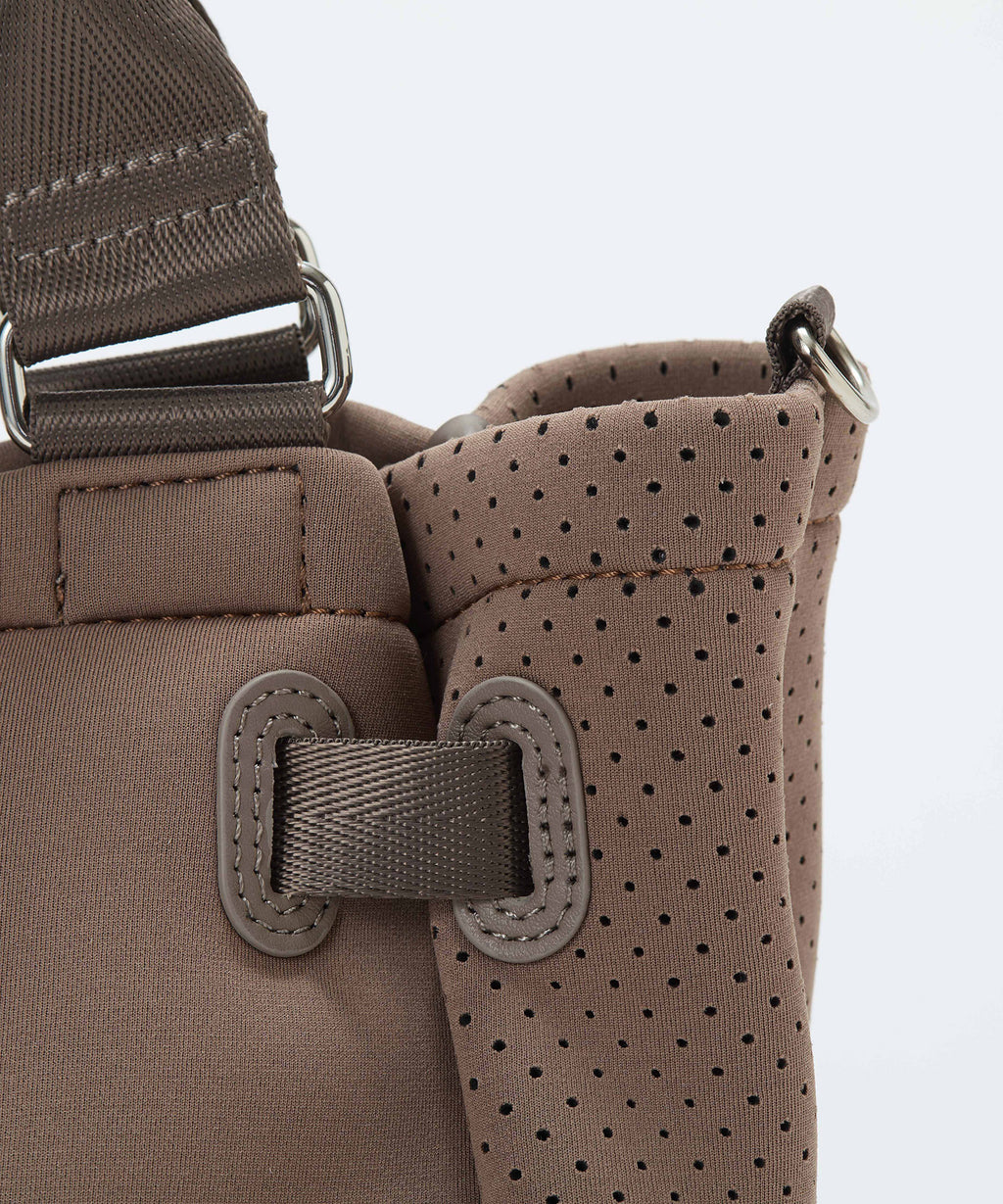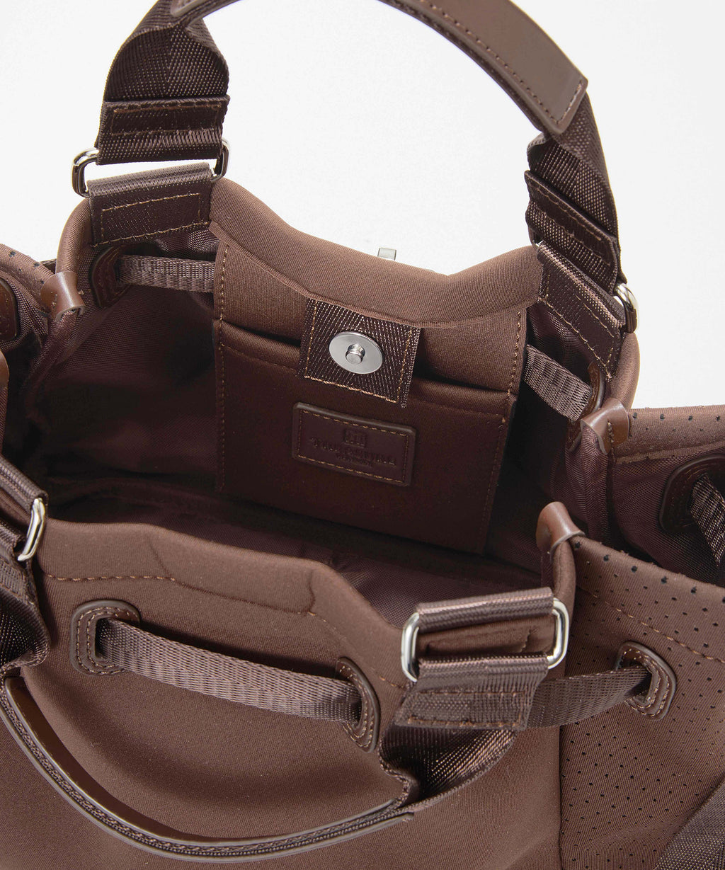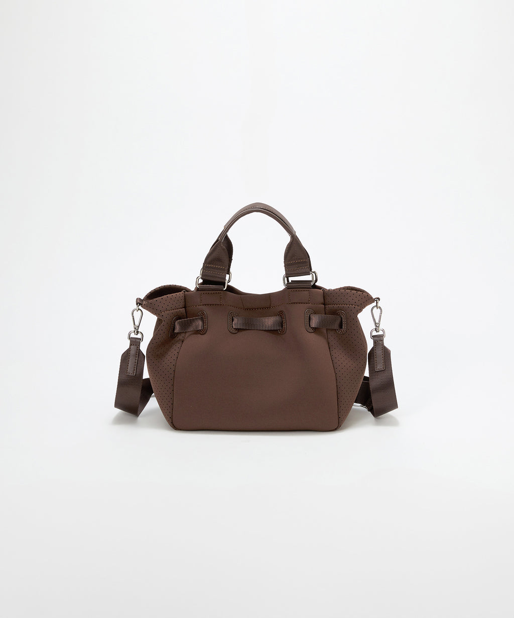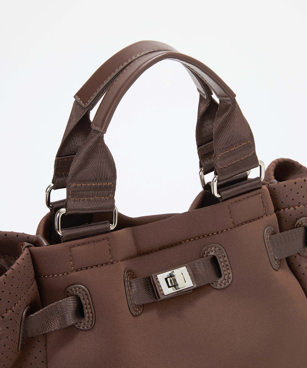 カジュアルなお出かけにぴったりなネオプレーン生地のミニトートバッグ。