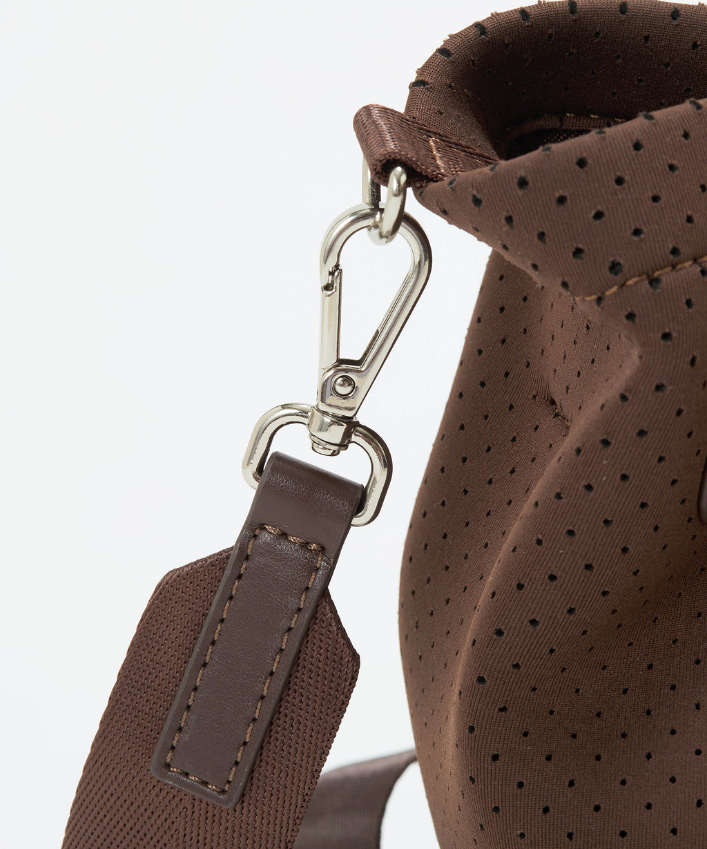 取り外し可能なショルダーベルト付きで斜めがけもでき、内装の口元部分にはリップなどの小物を入れておける吊り下げポケット付きで機能性抜群。