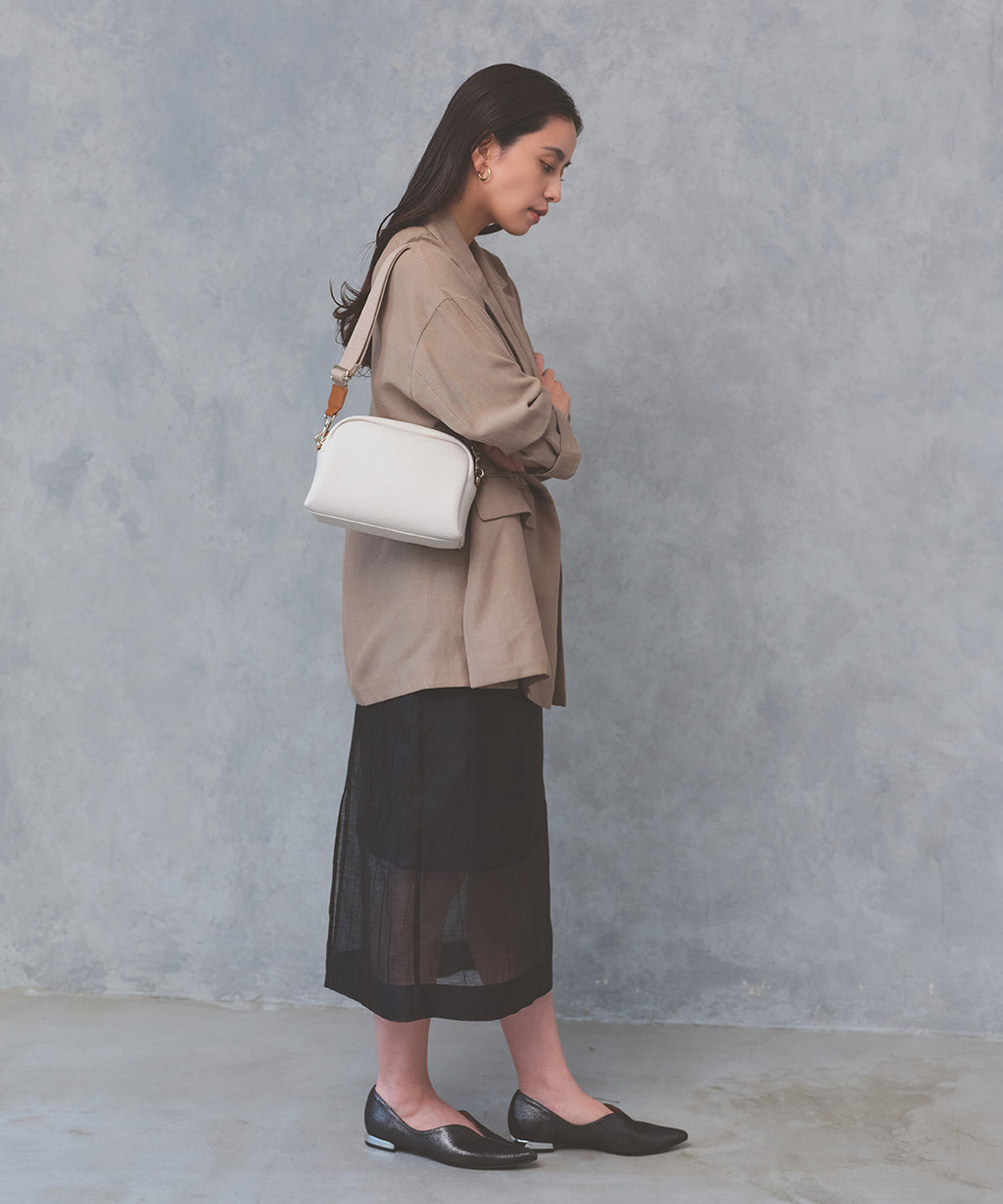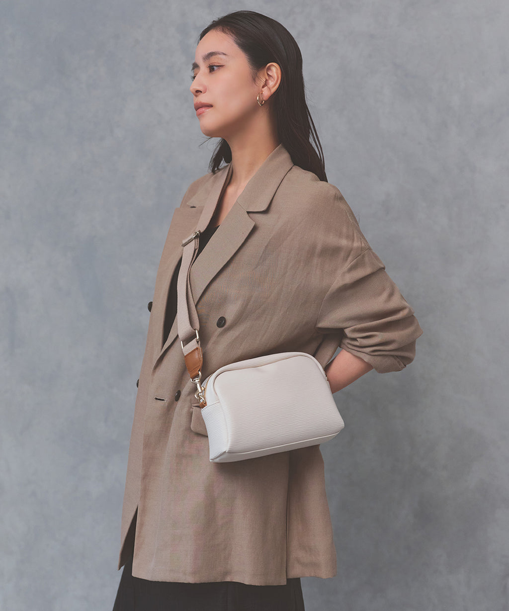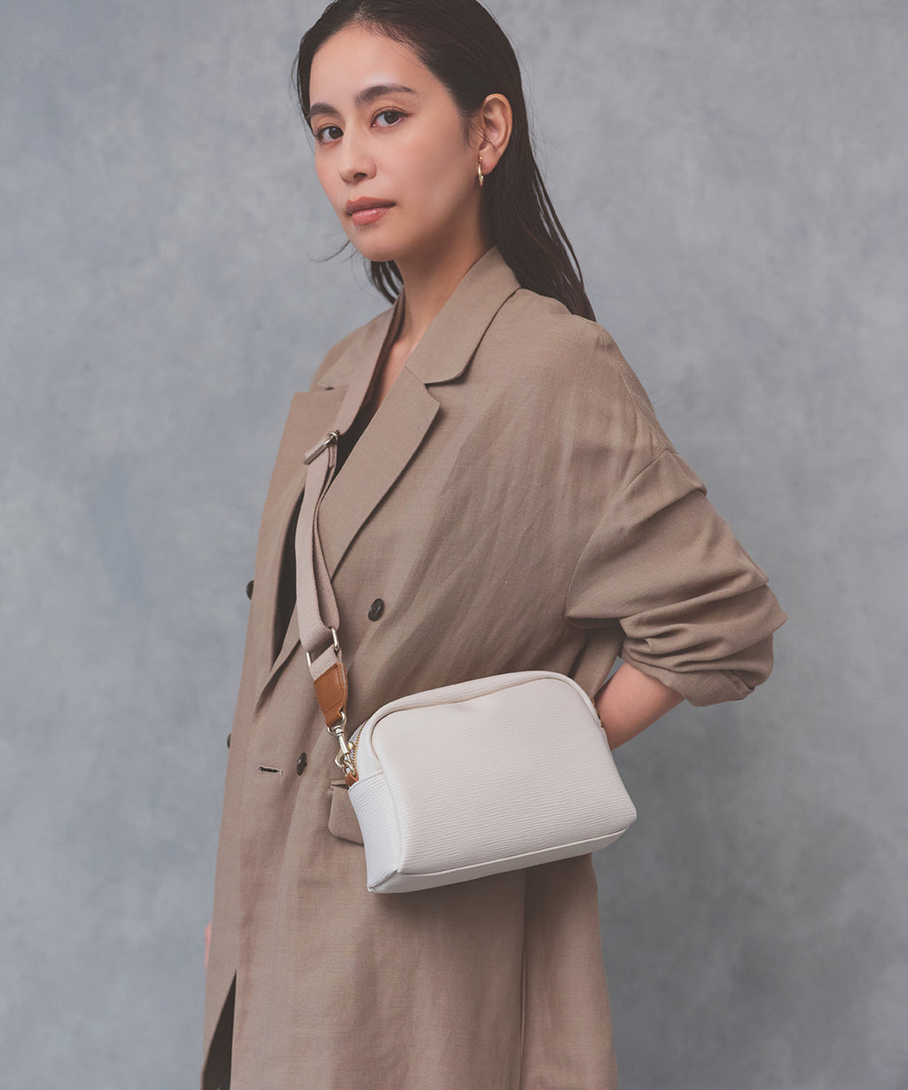スタイルを邪魔しない38mm幅のショルダーベルトは長さ調整可能。