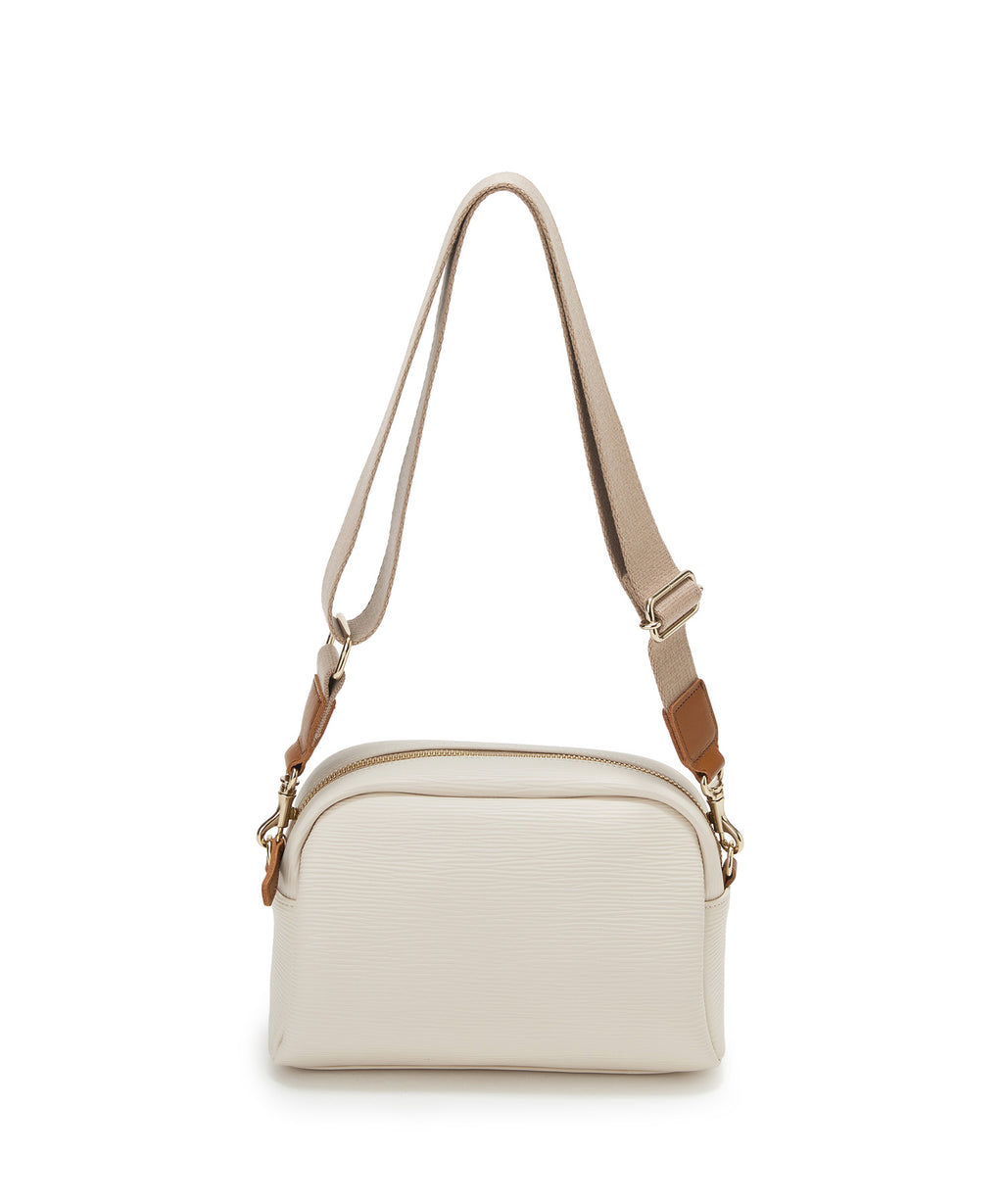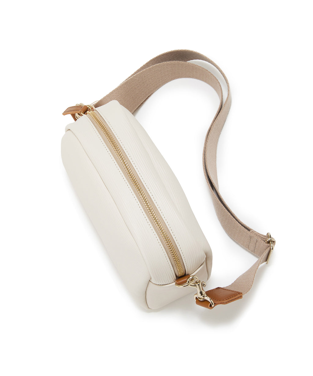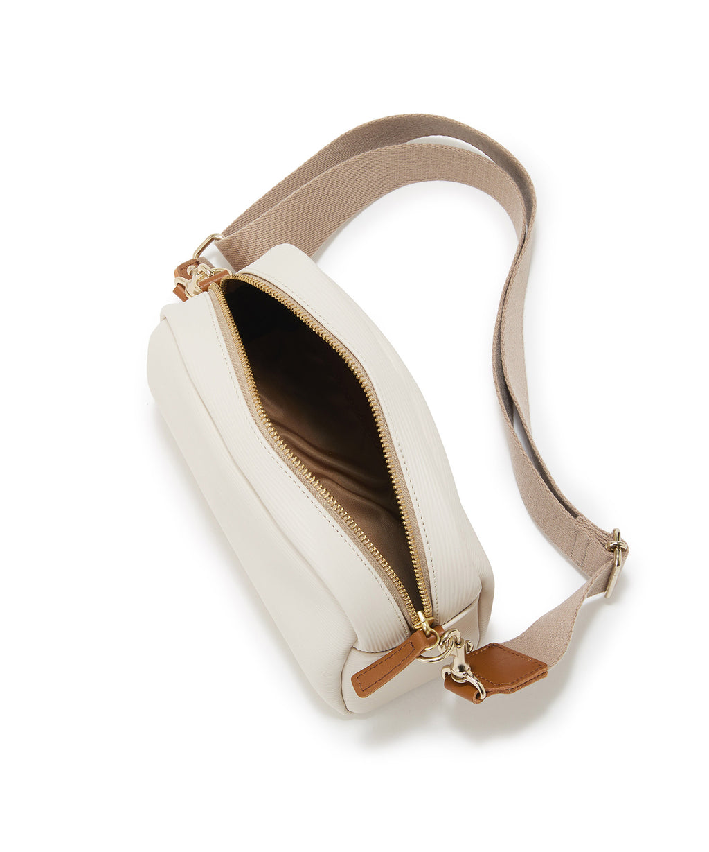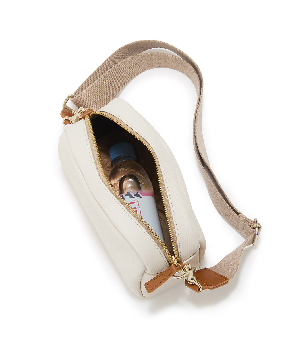 スタイルを邪魔しない38mm幅のショルダーベルトは長さ調整可能。