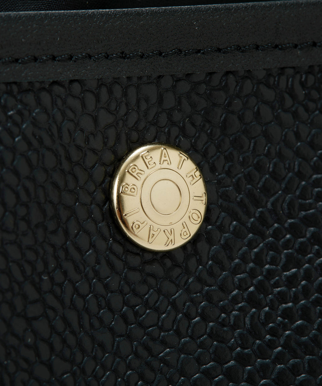 レザーのトリミングや刻印入りのネームタグ、さりげなく光るメタルホックが、大人のカジュアルに品を添えるアクセントに。