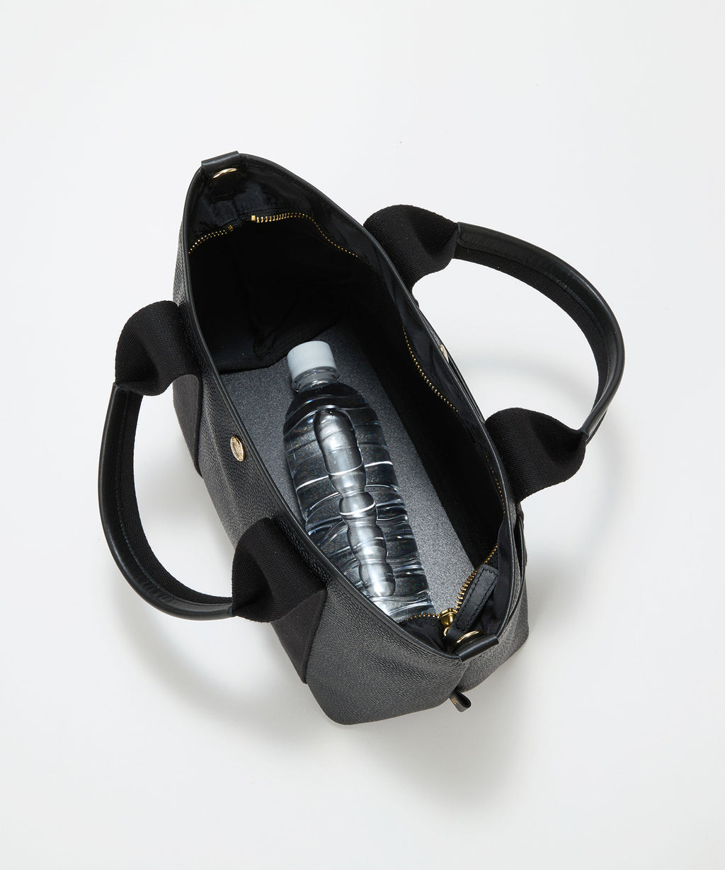 Mサイズはペットボトルが縦に入り10.5インチタブレットがすっきりと収まる、デイリーに最適なサイズ感。