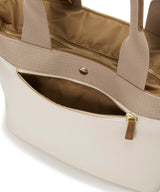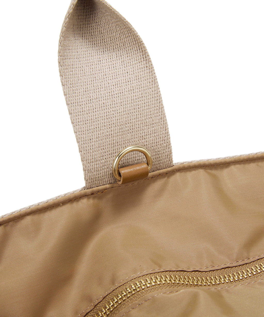 ハンドル裏のDカンは、ストラップでジョイントすればパスケースや鍵などさっと取り出して使用可能。お好きなチャームを付けてカスタマイズするのもおすすめです。