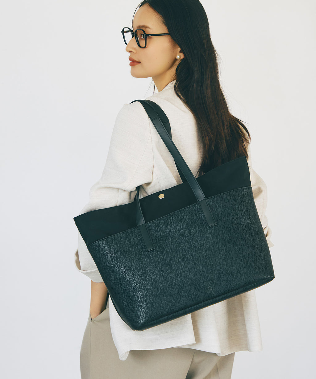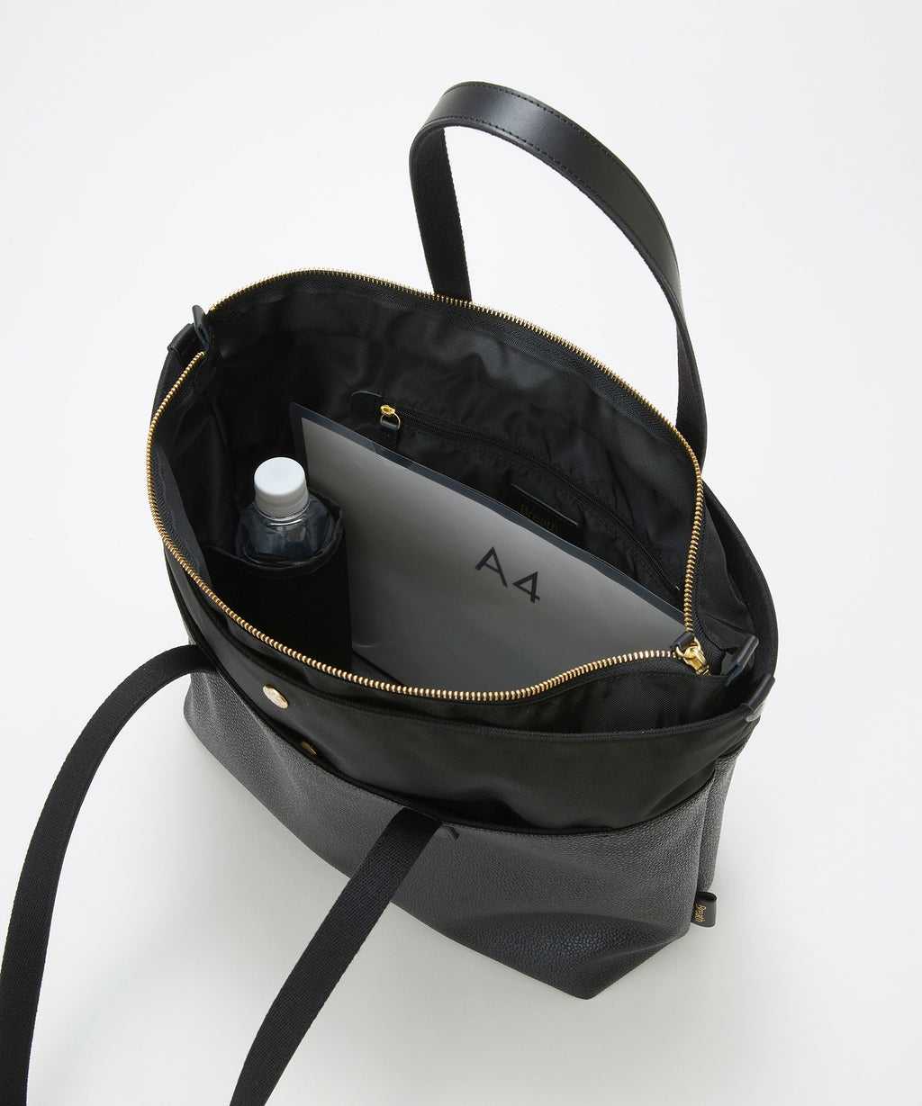 刻印入りのメタルホックやレザータグなどディテールまで洗練された、大人のための頼れるトートバッグです。