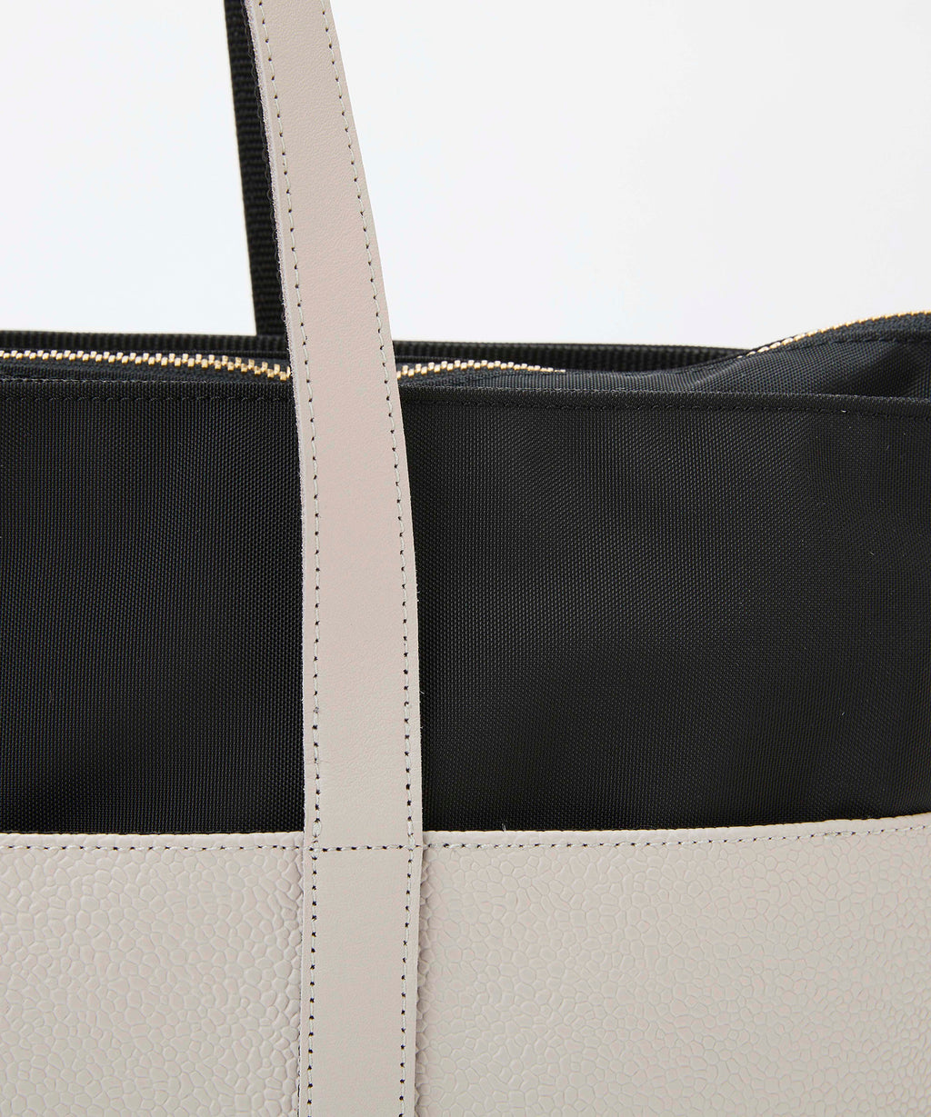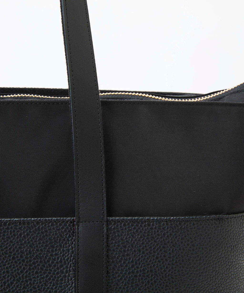 人気のスコッチグレイン素材と撥水性のあるコーデュラリサイクルナイロンを組み合わせ、デザイン性と機能性を両立したトートが登場。