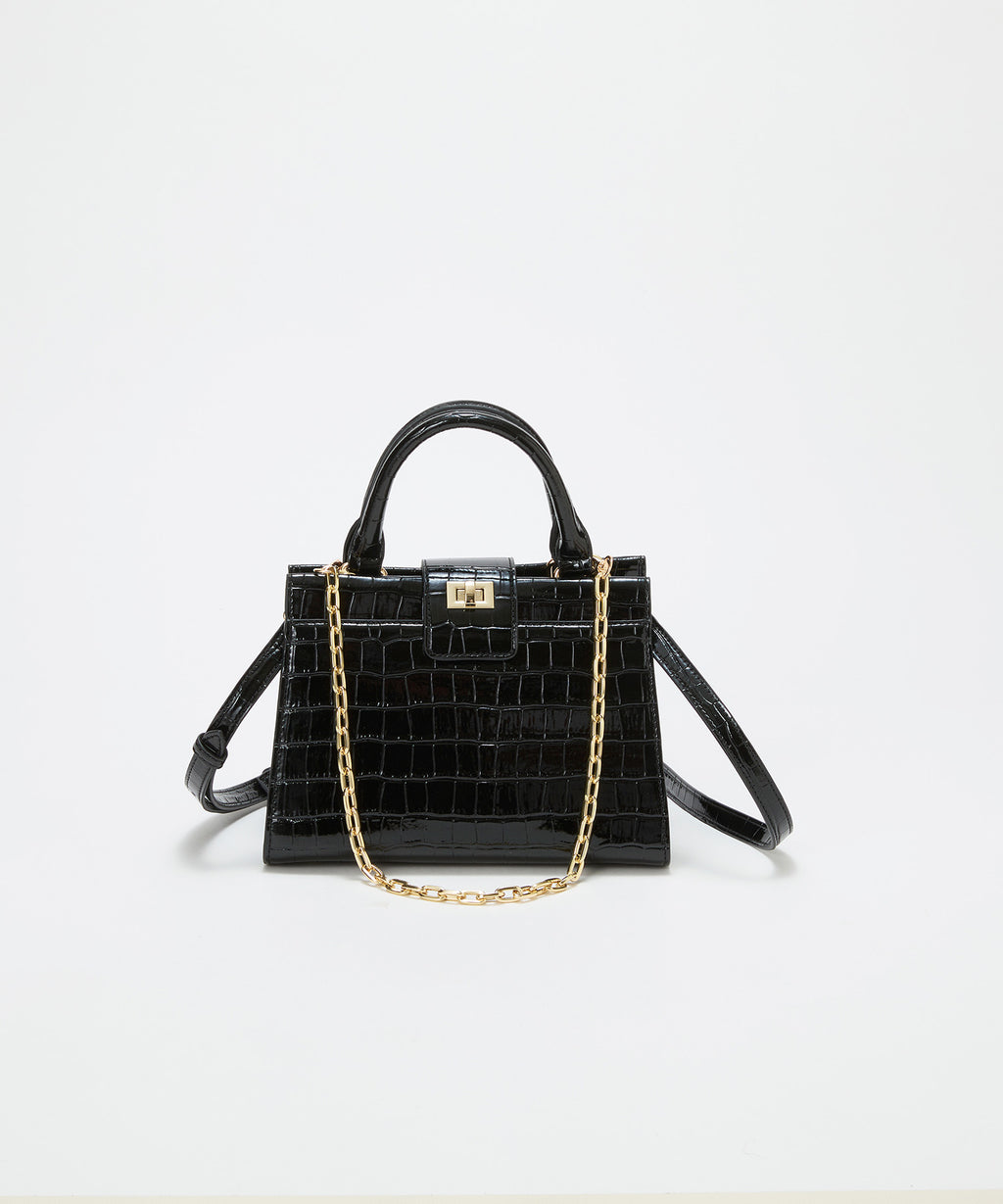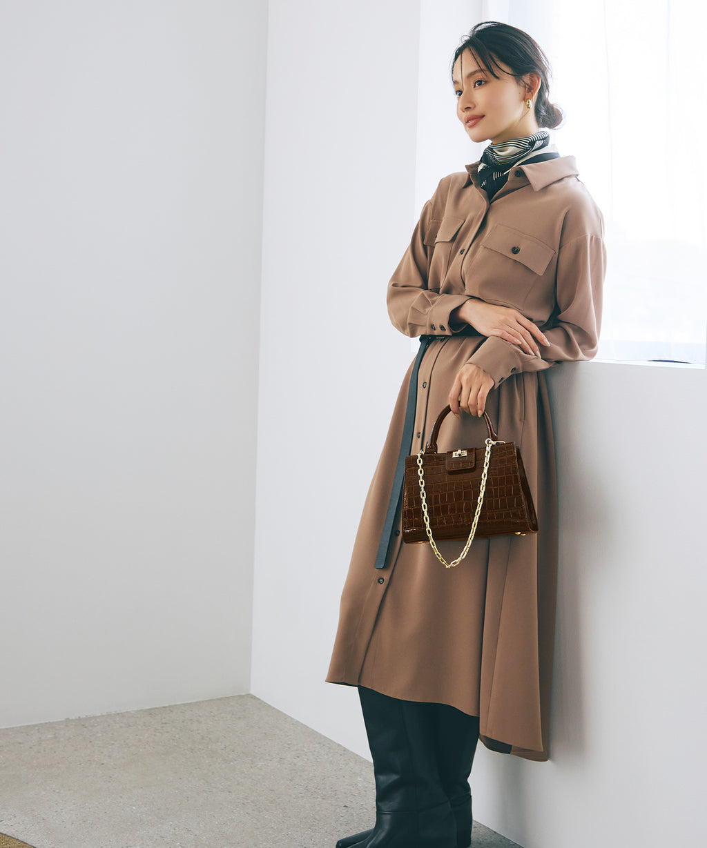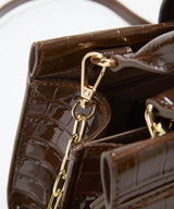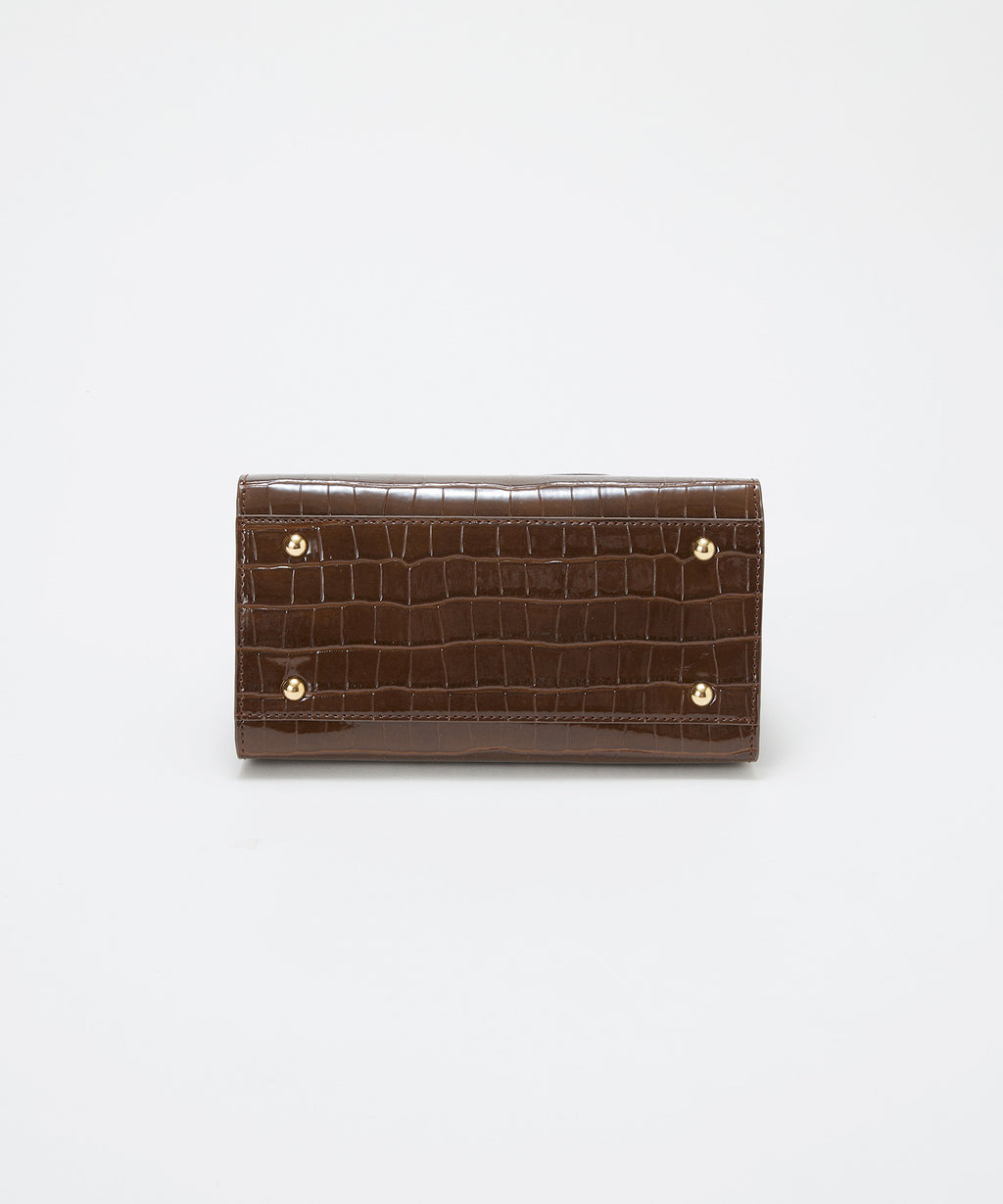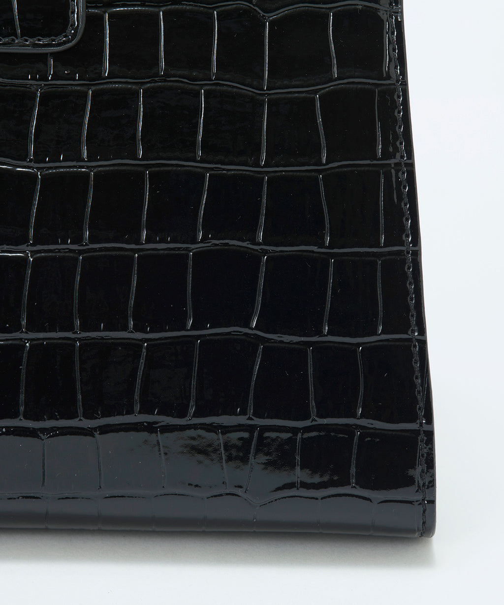 光沢感のある合成皮革にクロコ型押しを施したラグジュアリーなデザイン。