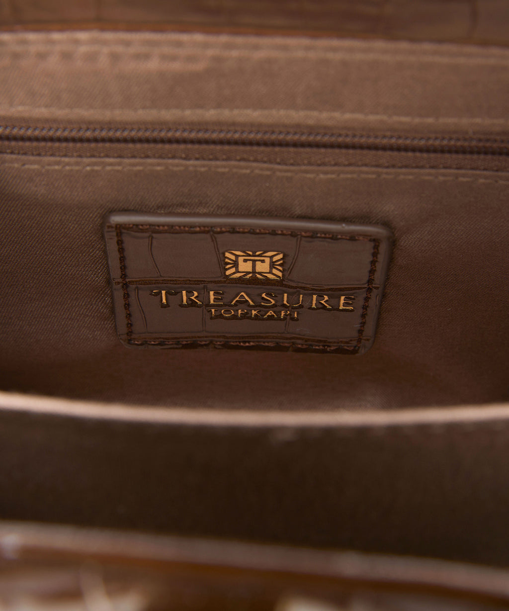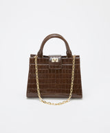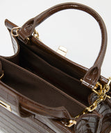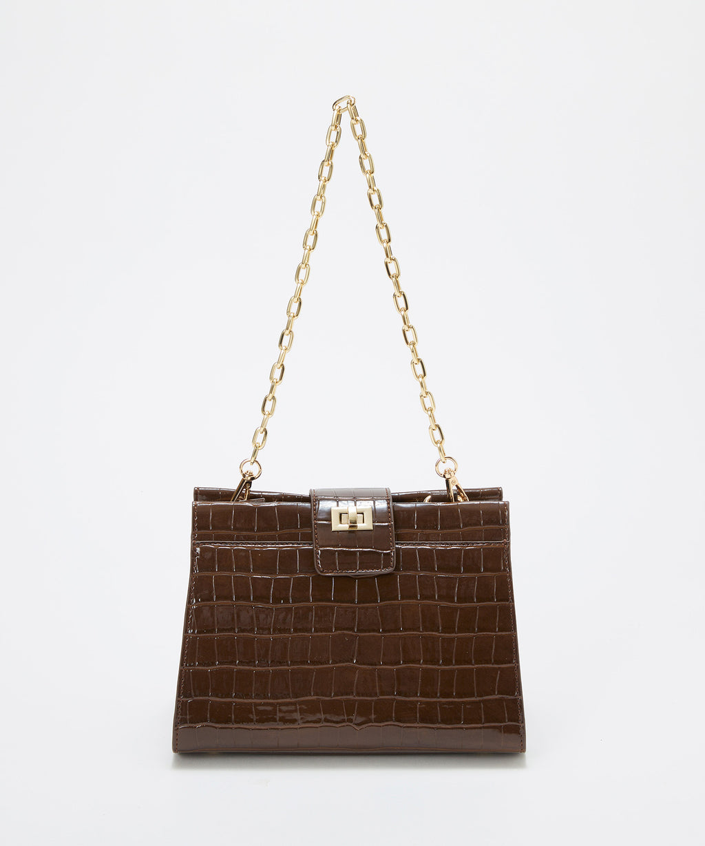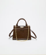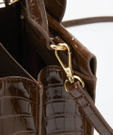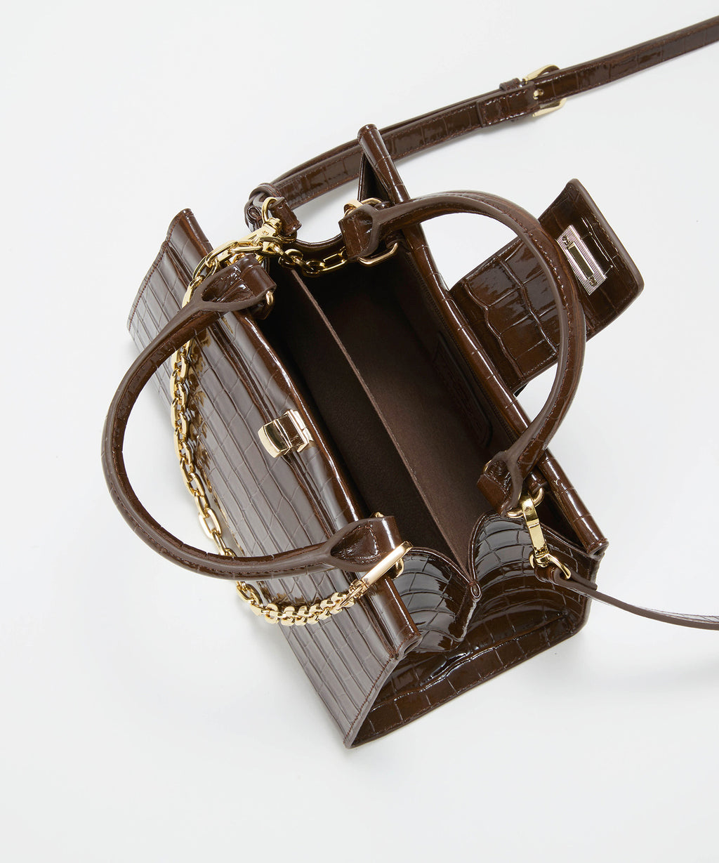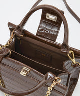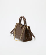 光沢感のある合成皮革にクロコ型押しを施したラグジュアリーなデザイン。