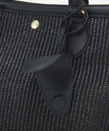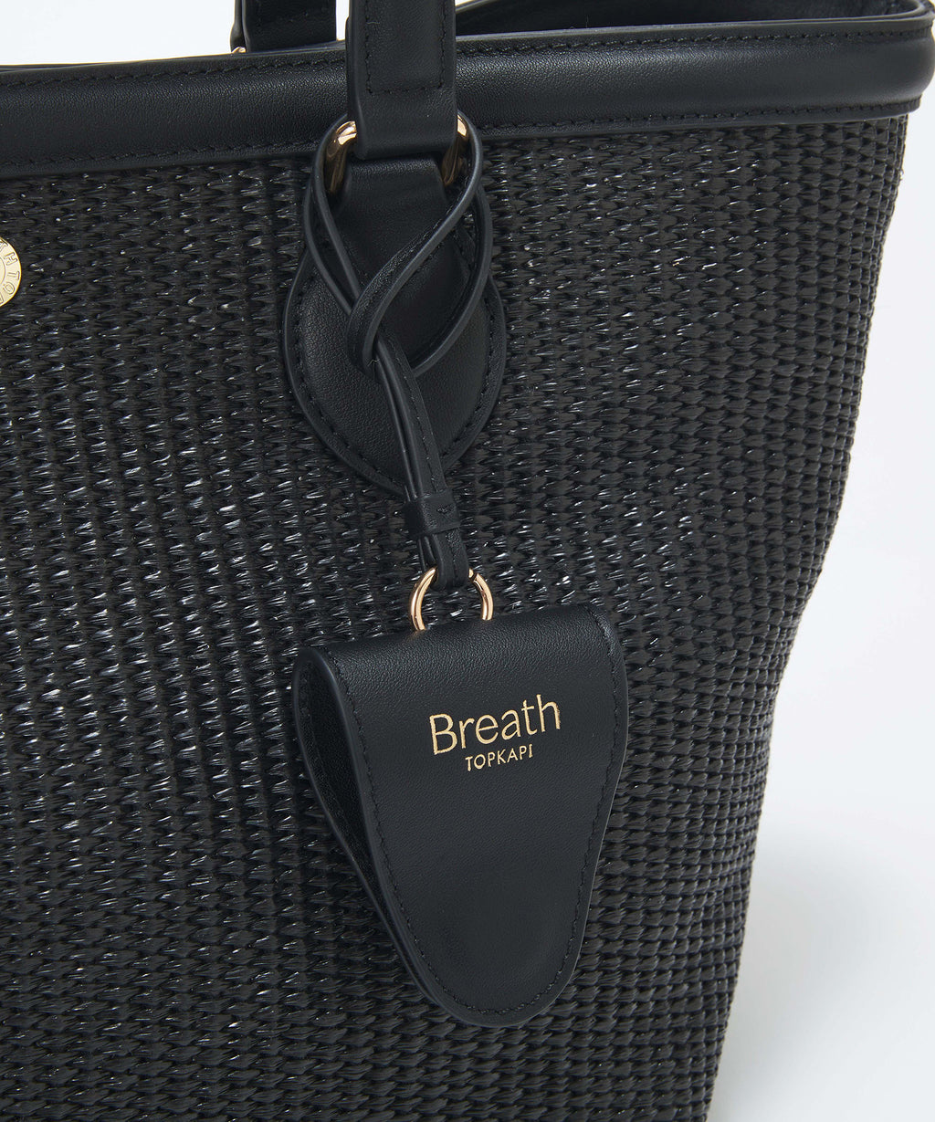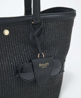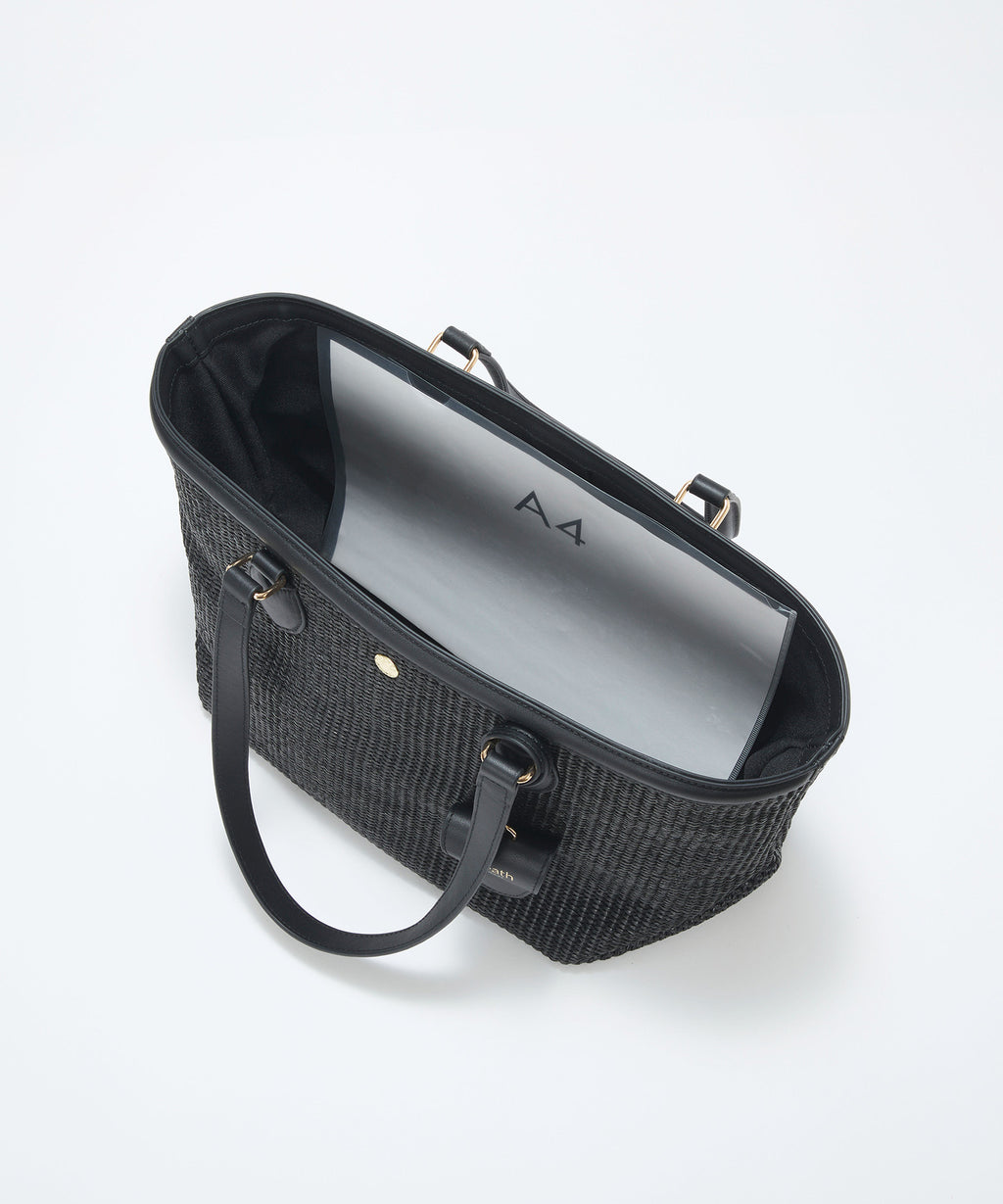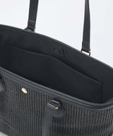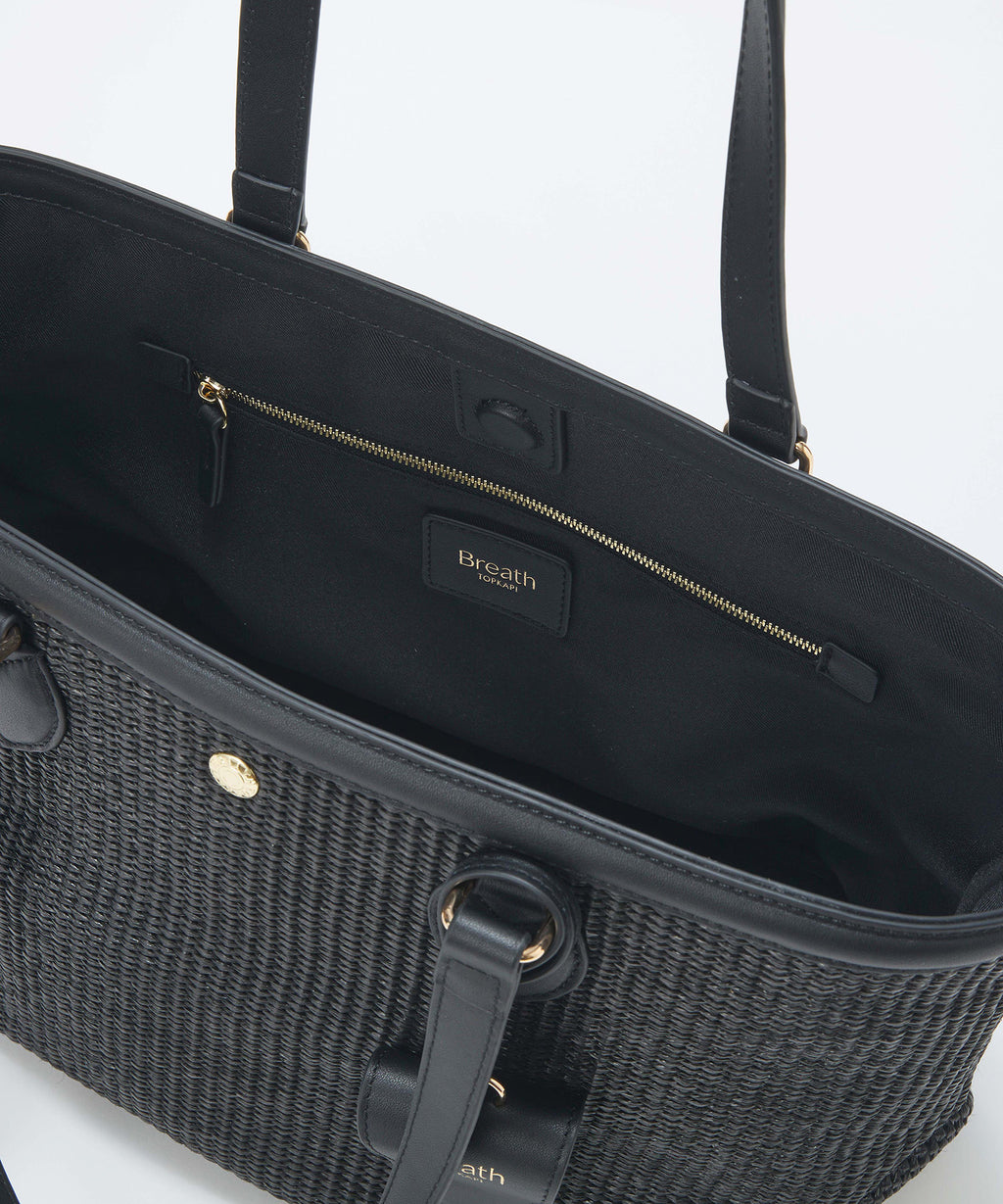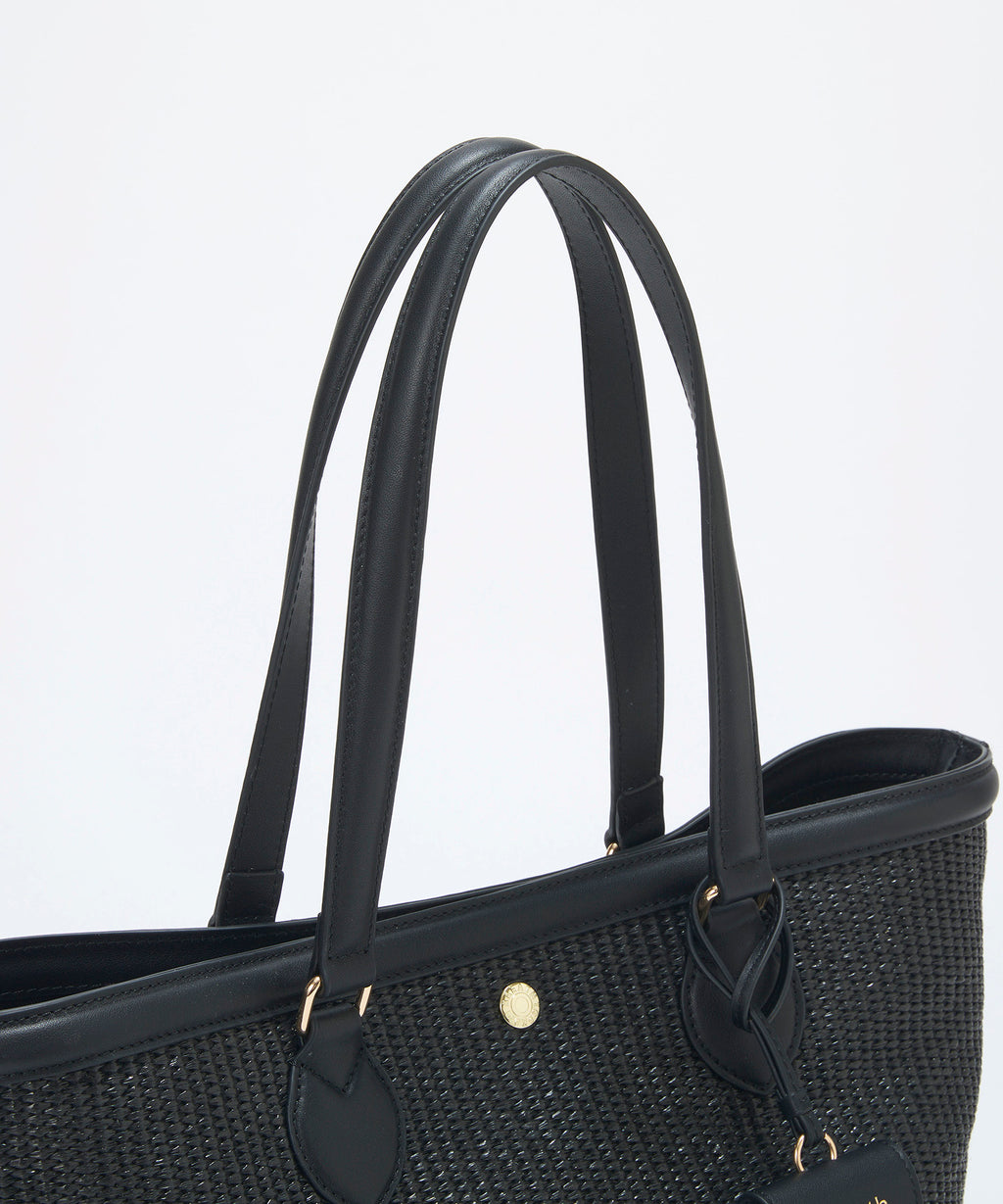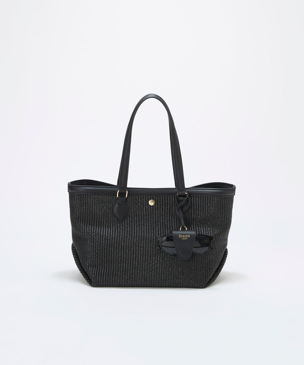 天然素材のような表情のポリプロピレン素材に、レザーをあしらったトートバッグ。