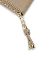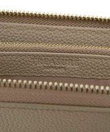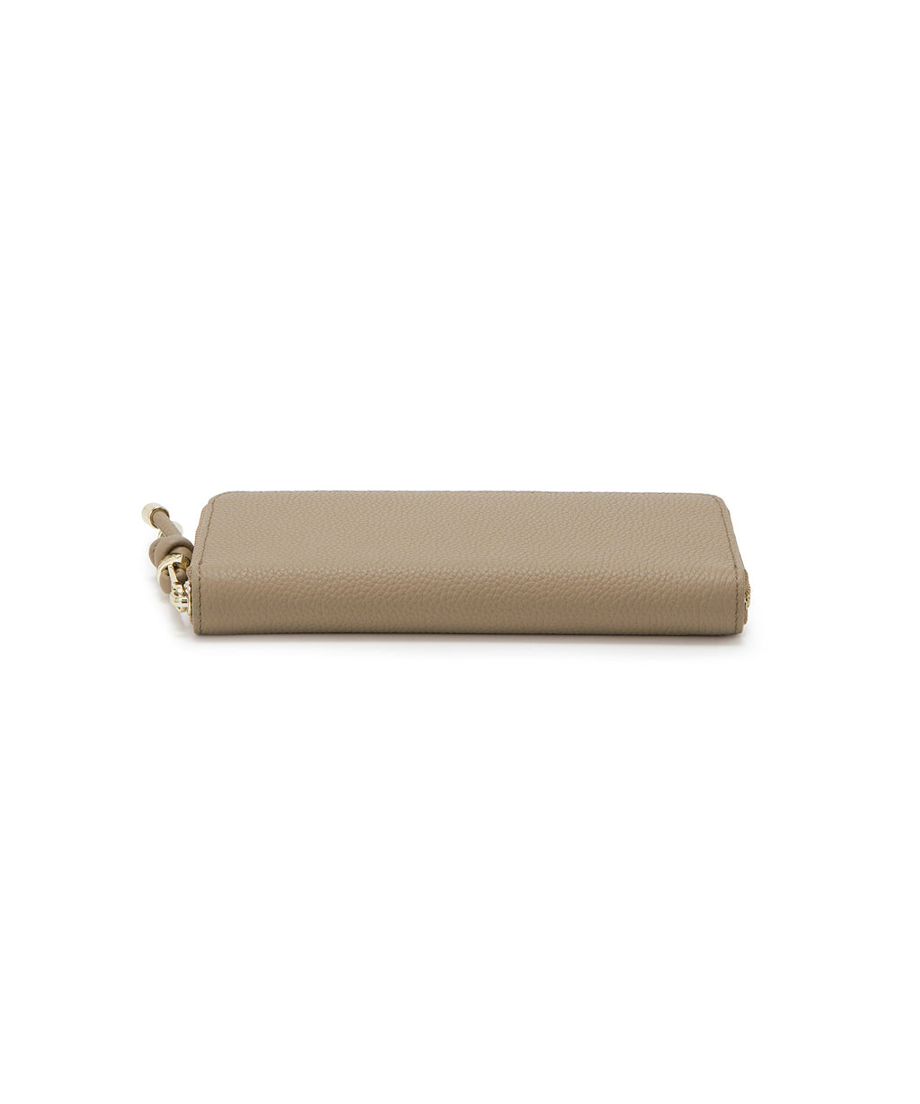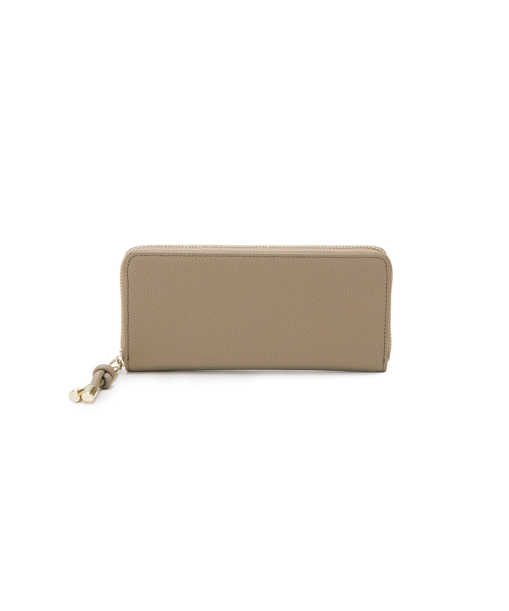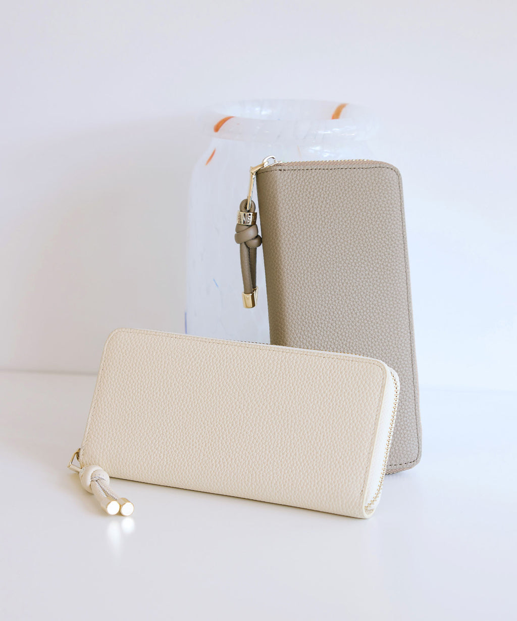 上質なレザーの風合いが際立つミニマルなデザインに、ノットの引き手とキラリときらめくゴールドカラーのリングがアクセント。