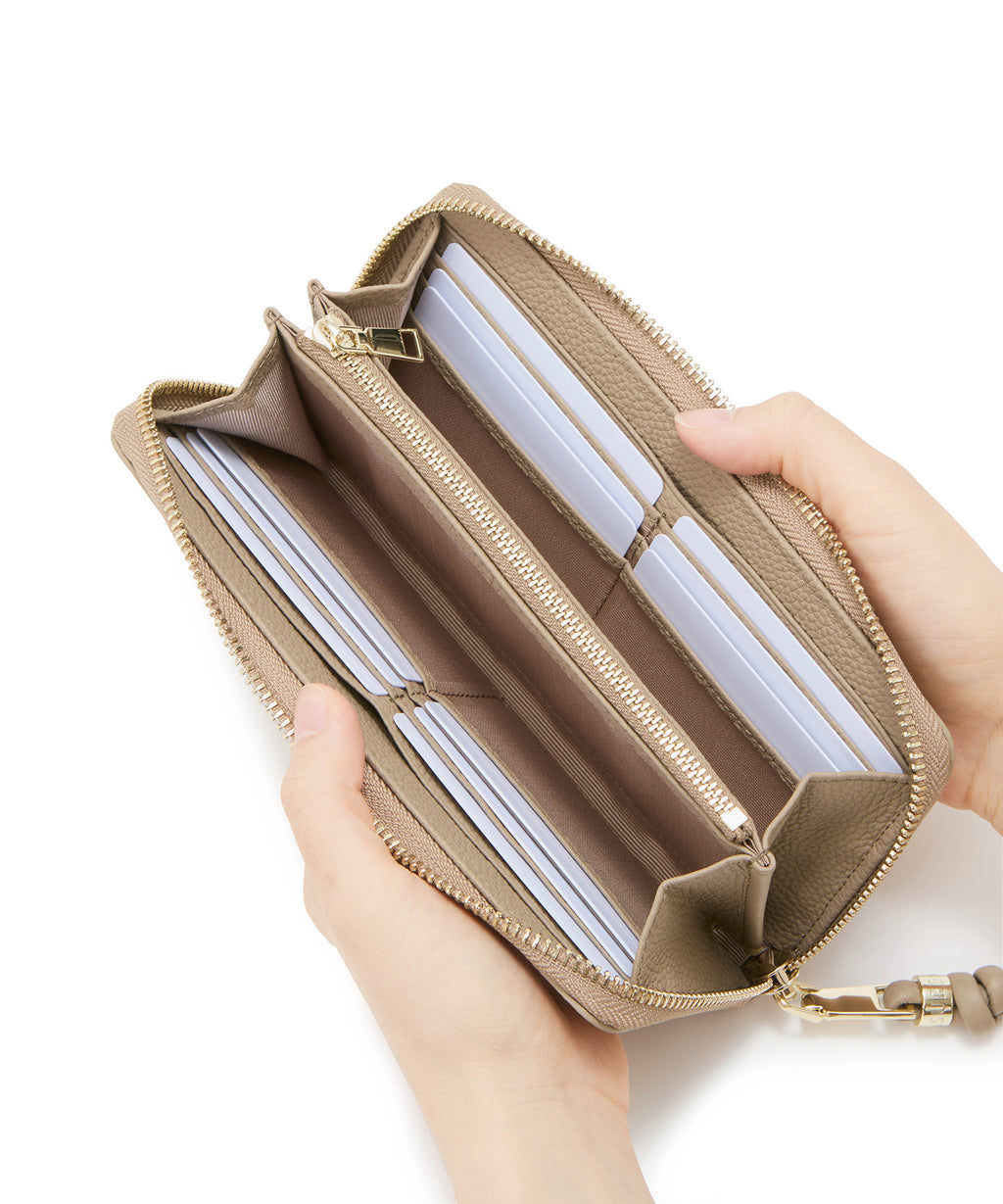 ラウンドファスナー仕様で口が大きく開き、中身が見やすくカードや紙幣の取り出しがスムーズにできます。
