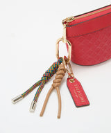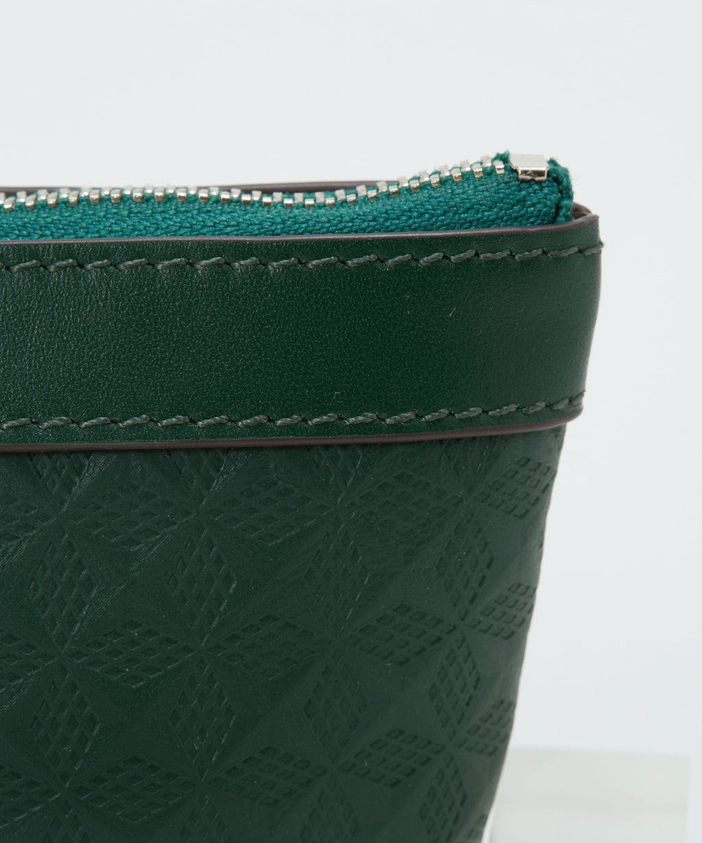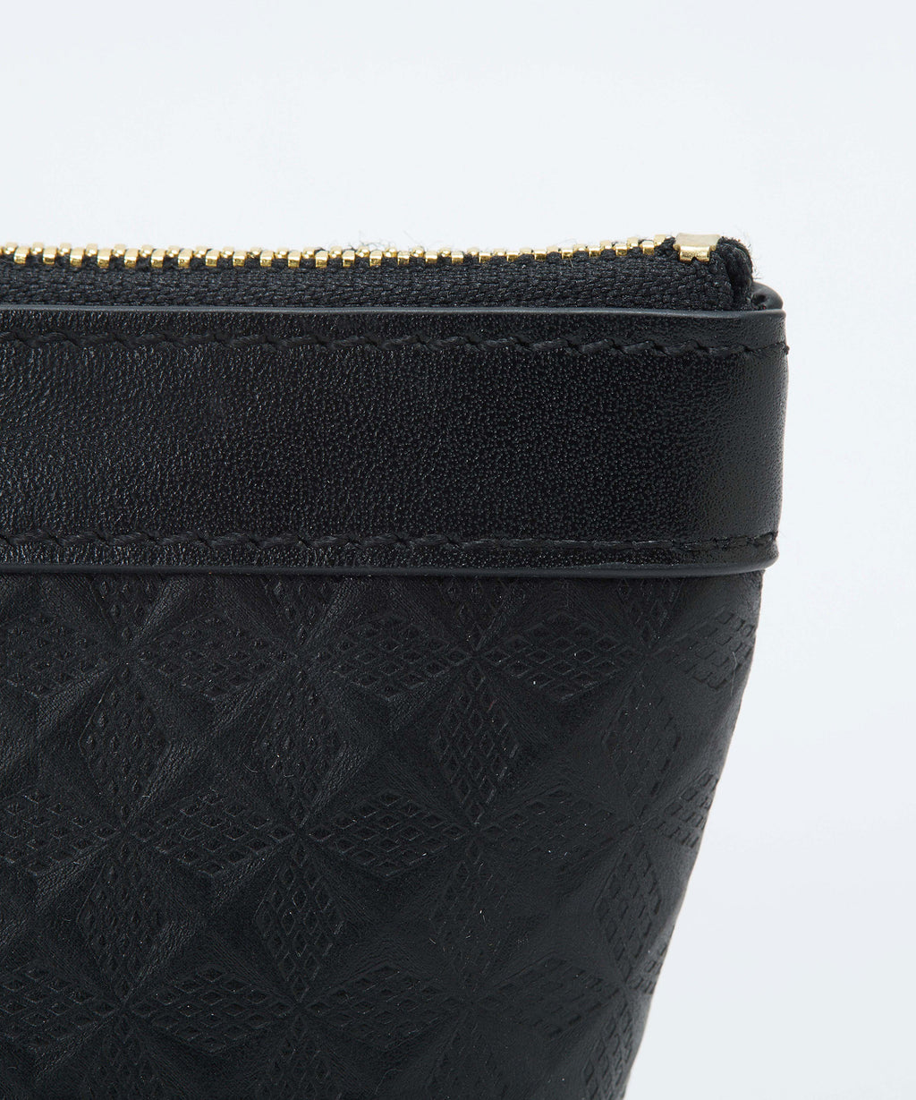 【円満】【ご縁】【財産の繁栄】を願う日本伝統の柄<角七宝>を型押ししたレザーとスムースレザーのコンビに、2つの素材のノット型チャームをあしらいトレンド感をプラス。