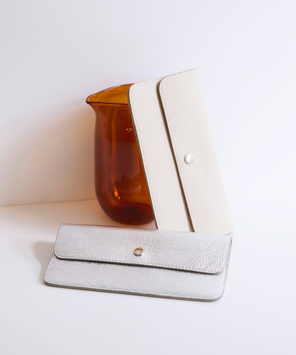 ミニマルさと機能美が共存する、クールな佇まいのウォレットです。