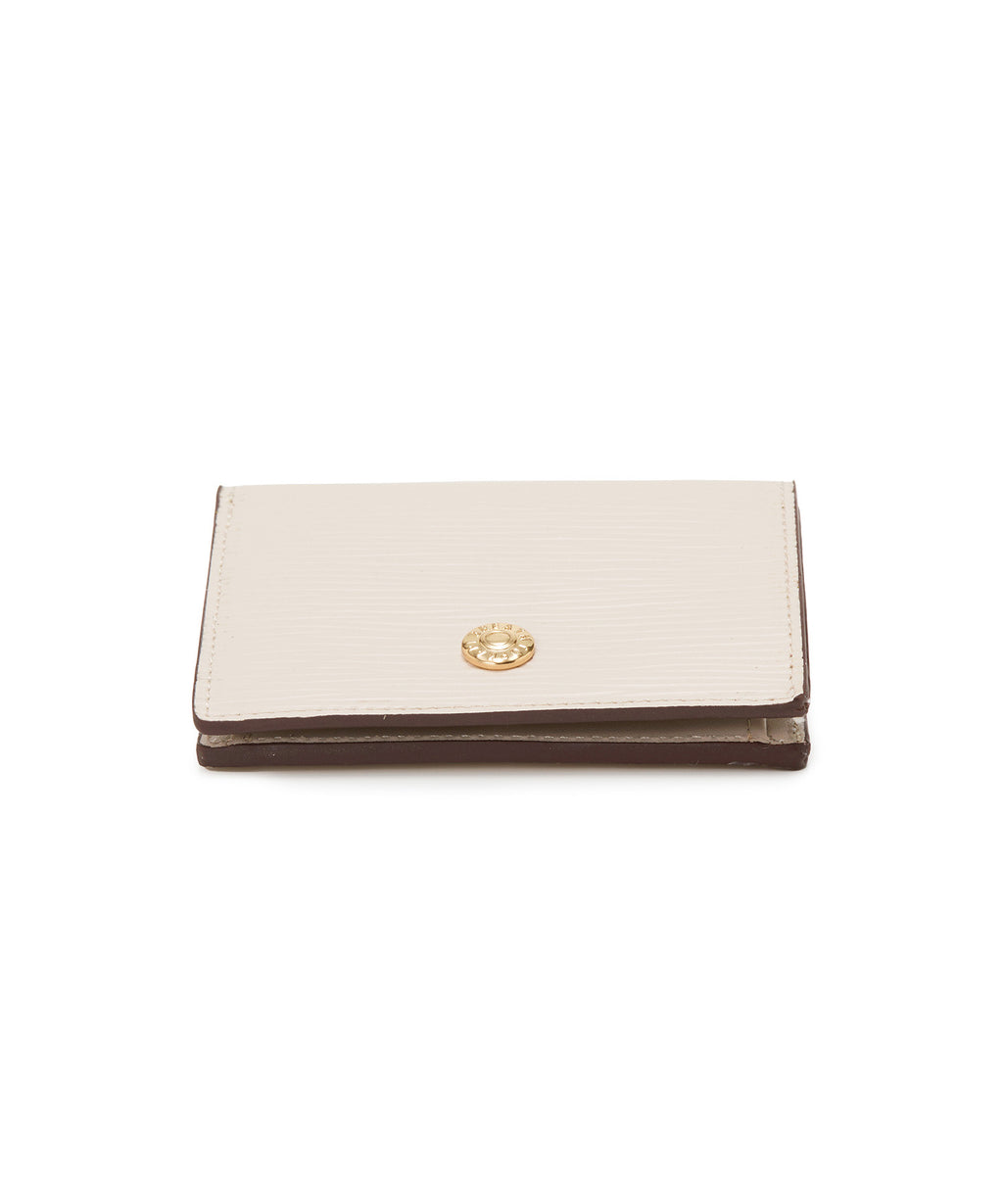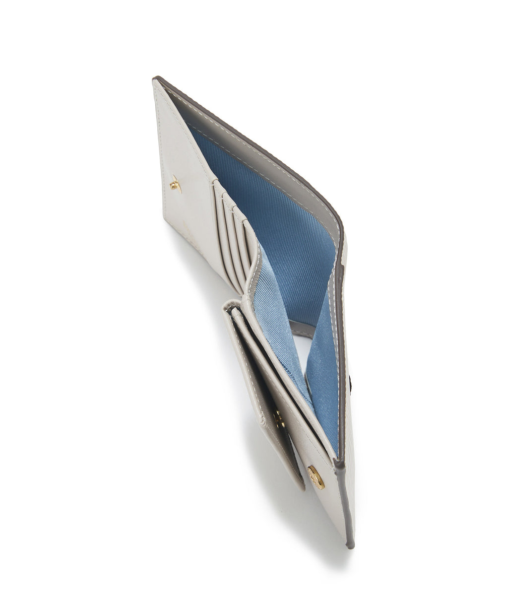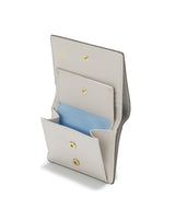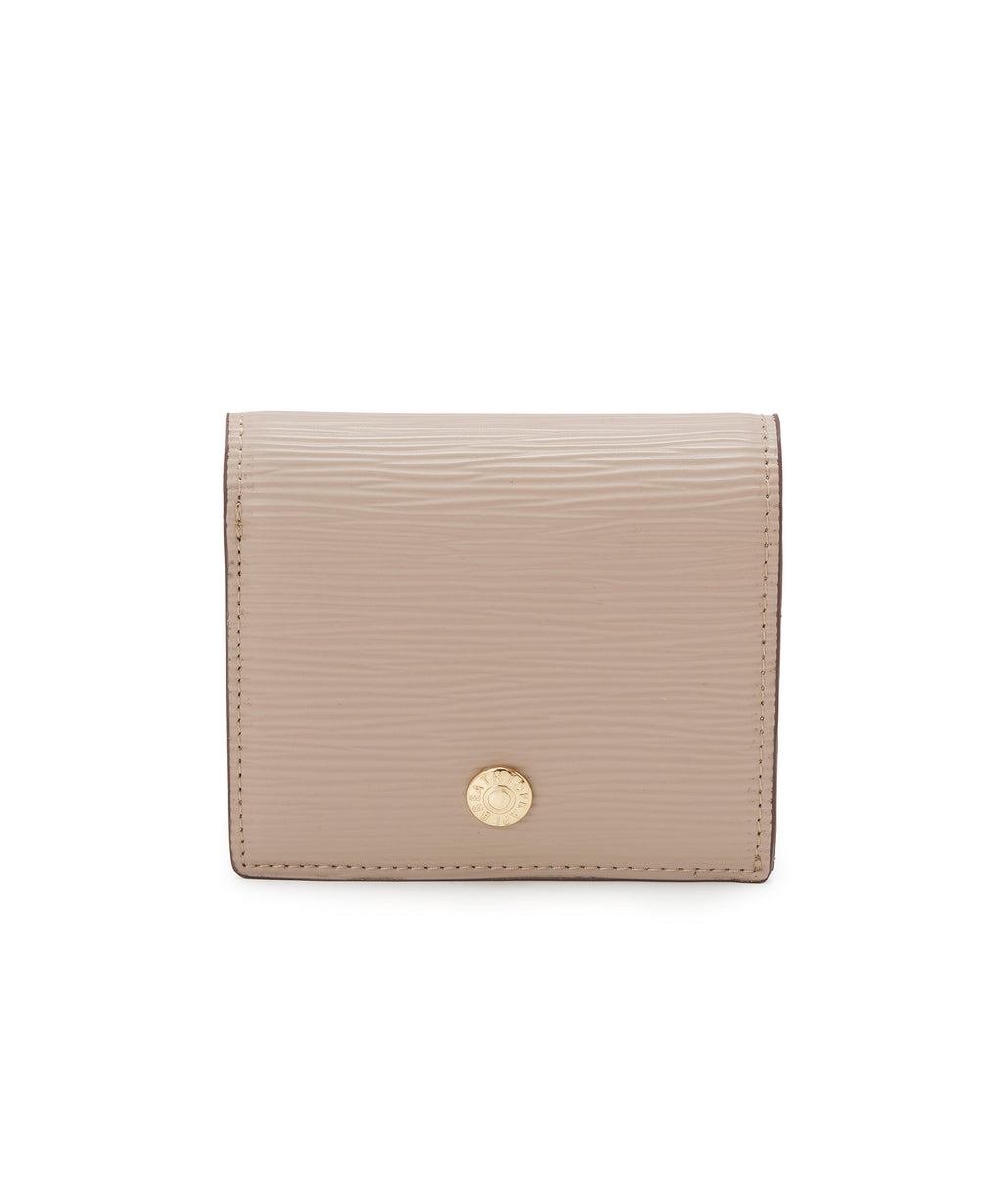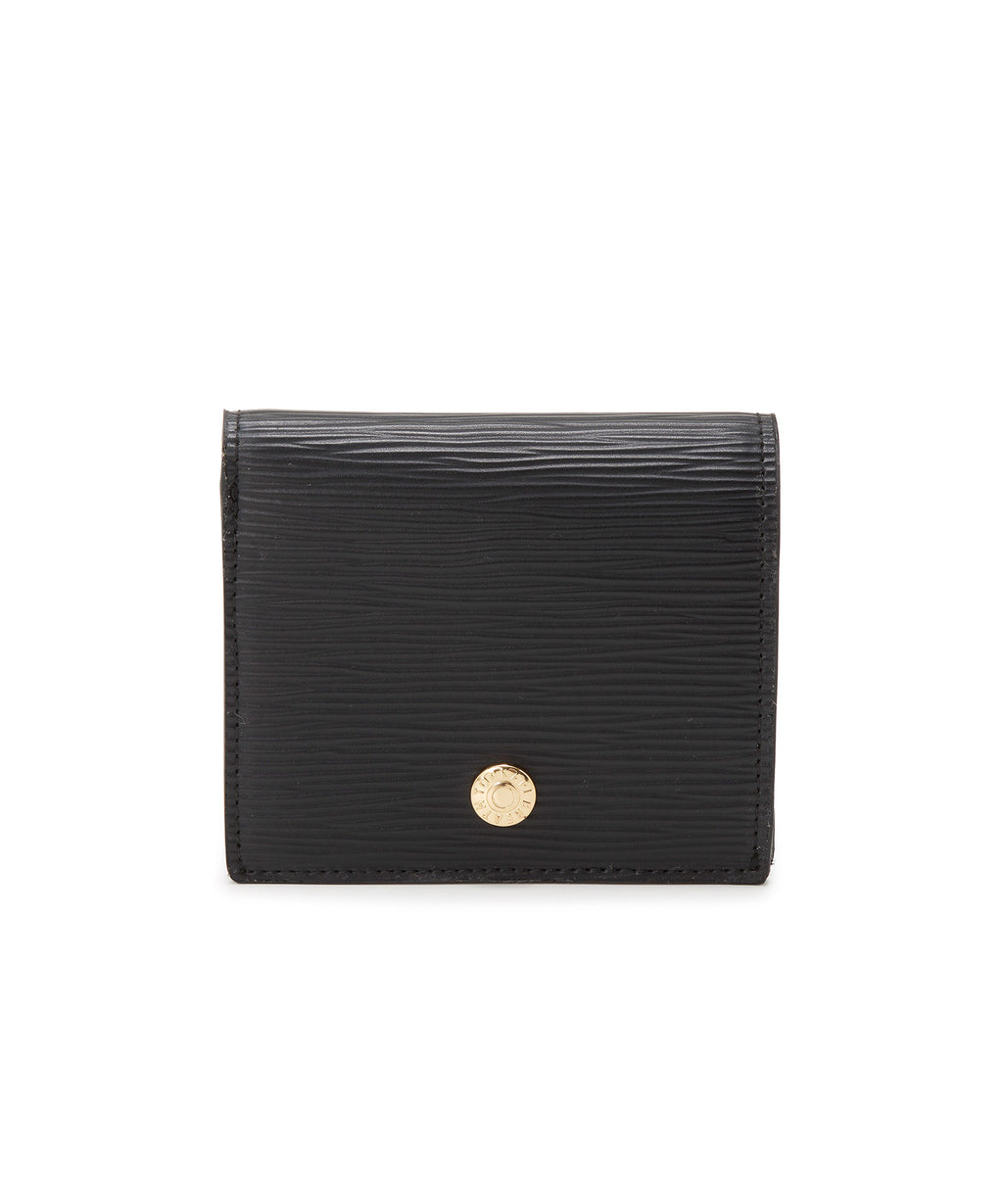 ロゴ入りのメタルホックをポイントに効かせた、上品で都会的なミニウォレット。
